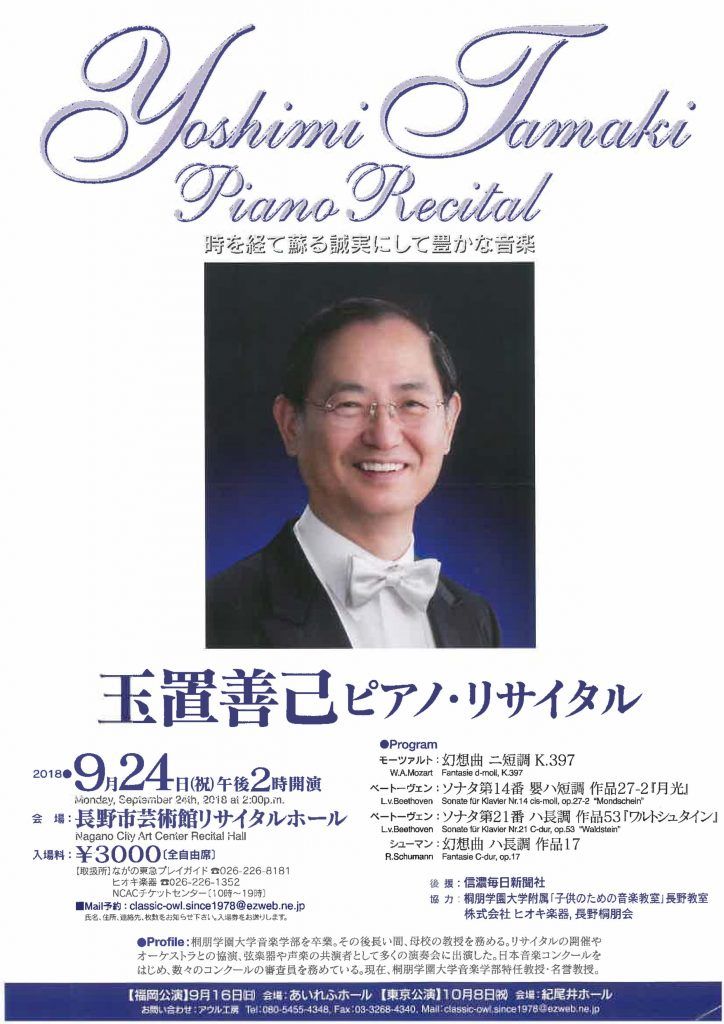 2018/09/24午前午後午前、実家。おれは部活関連の作業。家内はチクルス関連の作業。午後、芸術館リサイタルホール。玉置先生のリサイタルを拝聴。幻想曲で始めて幻想曲で締める素敵な構成。モーツァルト:幻想曲KV397ベートーヴェン:ソナタOp.27-2「月光」ベートーヴェン:ソナタOp.53「ワルトシュタイン」シューマン:幻想曲Op.17おれは映画の先行上映に行く予定にしてたので、前半だけ聴かせていただきました。申し訳ないです。後半を聴かないと、この考え抜かれたプログラミングの意図を100%味わったとは言えないのでホントに無念。玉置先生のお弟子さんの演奏はたくさん聴いてる。でも、先生の演奏は初めて聴かせて頂きました。大勢のお弟子さんたちのルーツがよくわかって、非常に興味深かったです。そーゆー点も確かに興味深かったのですが、おれはそんなことよりも先生の音楽やビアノ奏法の「クリアネス」と「誠実さ」「迷いのなさ」に感銘を受けました。先生の演奏には「これ見よがし」なところは一切なし。派手なパフォーマンスもなし。特徴的な(恣意的な)「解釈」も感じられない。しかし、その圧倒的な「クリアネス」と「迷いのなさ」で奏でられていく音楽にはとても興奮させられました。特にベートーヴェンの音楽の構造(緻密な動機操作、激しい転調など)のもの凄さが徹底的に明らかにされ、解き明かされていく様は圧巻でした。ワルトシュタインはそこそこの長さのソナタだけれど、ものすごく短く感じらた。このソナタは3楽章構成だけれども、1楽章構成のようにも聴こえたりする。実際、このソナタは2楽章が後年に短いものに書き換えられ、フィナーレへのブリッジのようにも捉えられるようなベートーヴェンの晩年の作品でよくあるような作りを先取りした格好になってる。こーゆー作り方はシューマンも追求したし、シェーンベルクやベルク、スクリャービンといった作曲家たちの作品に繋がってゆく。こうした流れを予見するような実験的かつ前衛的なベートーヴェンの過激な書法が、非常に明快に提示されてゆく。そーゆー演奏でした。それはもちろん「先生の音楽」でもあるだろうけれど、それ以前に、ただひたすら「ベートーヴェン」だった。「ただひたすらベートーヴェンであること」が先生の音楽とゆーことなんでしょうね。刺激的なひと時でした。「お人柄が表れた誠実な音楽」なんて確かにそうなんだろうけど、そんなよくある常套句では片付けたくない感じ。これが「ベートーヴェンとものすごく関係の深いシューマンの幻想曲」に繋がるのだなあと思うと、本当に後ろ髪ひかれる気持ちでしたが、ここで失礼させて頂きました。うう、無念。