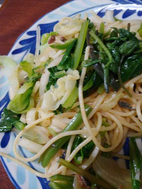 昼は家内作のスパゲティ