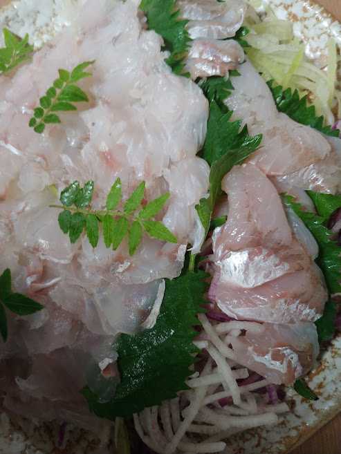 夜かながしらとコチの刺身、