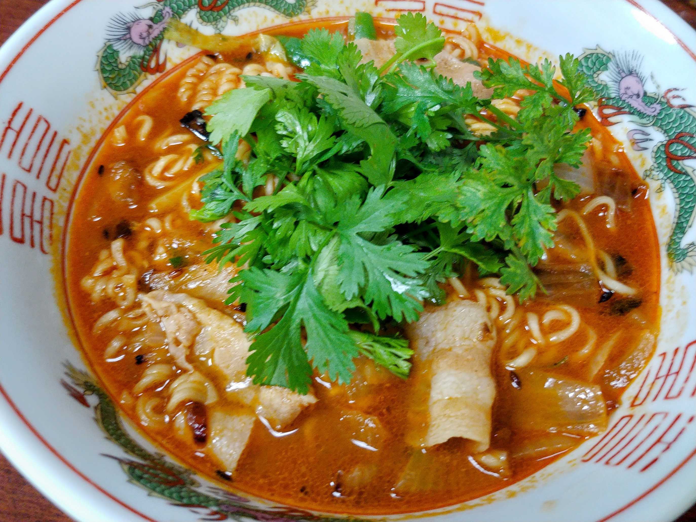 昼スパイスカレーラーメン。うまい。激辛にする。