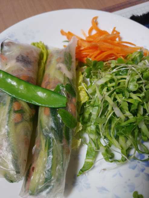 家内作の納豆の生春巻きなど。