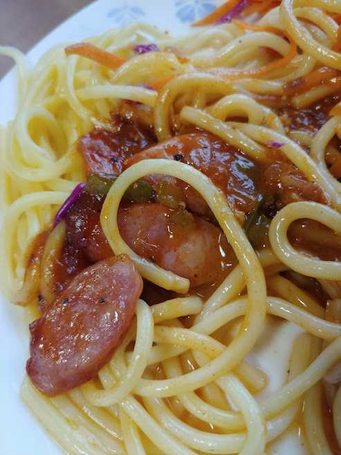 昼、ママーの冷凍あんかけスパゲティ。なかなか良いけどこりゃ量が少ないね。