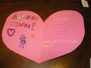 25日月曜日、晴れ。32度。とにかく真夏。平年の平均気温10度高い。普段日曜日は多めに寝て、体を休ませるのに、今回見本市で働いたので、月曜の朝は打ちのめされていた。朝から掃除をした。 今日は、なんと娘の学校で年度末パーティーが行なわれる。なんでも、今年はカリキュラムの中に、劇があったので、クラス全員参加の劇を親に見せてくれる。ちょっとミュージカル風であった。お話は、なんとクラスメートの女の子が思いついた物。なかなか良い劇になった。 その後は、なんとブフェと言って、立食パーティーになっている。我担任はこれに凝っていて、いつも保護者にこれが食べたいなど、他のクラスに比べて、かなりお金がこれにかかる為、担任(我クラスには、3人いる。)らのプレゼントは、せこくなる。ここで、色々なママ友達とお喋りをしたり、担任と少し会話をしたりする。もちろんパパも見に来る。 真ん中に「良いバカンスを!」と書いてある。この後、片づけがあるのだが、自分たちが飲んだ、食べた物でさえ、ほっぽって帰っていくから、たまった物ではない。いつも片づけを手伝うのだが、手伝うママ達は、決まっている。手伝いたくないのは、分かるが、自分や子供が使った物ぐらい片付けて欲しいもの。しかも、いつも、ブフェの準備を手伝いたがるママがいるが、この人、片付けは全くしないのである。 この日がハードだったのは、続いてバレエ教室でも、年度末小発表会があった。劇場を借りてする発表会は、2年に1度のわりでする。去年にかの面倒くさい発表会があった訳で、来年も又あるのかと思うと頭痛がしてくる。とにかく暑いのと、疲れたので、ちょっと眠くなってしまった。来年からレベルが上がると、1時間の授業から1時間15分の授業で、しかも値上がる。ベルルスコーニ首相の実の妹(去年亡くなりました。)のダンス学校だが、金持ちなのに、まあーお金のことになると、せこいのなんの!!しかも一番疲れている金曜日に、今年文句が出たにもかかわらず、又来年度の金曜日に授業を入れたので、かなりの考えもの。しかも「この不景気の為に110ユーロの値引き!!」(ただし7月後半までに年間費ずべてを払えば)とは、何とも言葉にならない。とても、人を偽るのが、上手いのである。彼(ベルルスコーニ)の政治のやり方と全く同じ!!