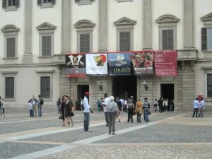 10日、日曜日 晴れのち曇り。前回、日本人の子供が欲しいと、リクエストがあり、子供を集めたのだが、イタリアのテレビ局に呼ばれて、行くはずだったのが、ドタキャンで中止された事に、お詫びにと、展覧会「侍」に招待された。せっかくなので、行く事にした。 14時50分に待ち合わせだった。 ここの王宮には、他にも、モネ、未来派の展覧会が行なわれていました。 展覧会入り口には、日本ッぽく、日本庭園の偽物があった。「侍」といっても、鎧、兜の展覧会で、かなりの量の多さにビックリした。しかもかなり状態のいい物で、江戸時代のものがほとんど、戦いには使ってないだろう?と言えるほど、いい状態だった。見事だった。外国人コレクターの物らしい。Koelliker コレクションのものがほとんど。ただ外国人コレクターの物だから仕方がないのだろうが、もう少し鎧の背景的な説明が、欲しかった。最後の所に、マジンガーゼットや、ガンダムなんかの大きなフィギュアがあり、鎧、兜からイメージされて作られた。と言う終り方が面白かった。日本人だから、考えた事がなかったが、外国の人から見るとそう感じるのだ。 春で、暖かくなったから、Duomo広場は、たくさんの人手だった。王宮は、Duomoの向かって右横。5時頃になると、曇ってきて、空の色が悪い。 Duomo広場から、我家に向かう道Via Torino。ここも日曜日でたくさんの人なので、驚いた。