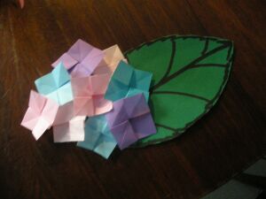 5月15日、22日は娘のクラスメートの誕生会だった。15日は、女の子の誕生会で、去年、折り紙のカードを作り、ママとも仲良しなのと、女の子には折り紙カードが人気なので、作った。kittyちゃんのタンクトップ(H&M)と、Kittyちゃんのヘアーバンドを買った。娘の友達のママと割り勘した。 5月だったが、この日近くに雨ばかり降ったので、アジサイの気分になった。9歳の誕生日なので、花が9つ。裏にメッセージが書ける様になっている。 22日は、クラス全員招待の誕生会だったので、クラス全員のお金を集めて、大きいプレゼントを買うのだが、カード代が出ないとかで、頼まれた。クラス全員の時は、とても安いお金(500円ぐらい)を皆から集めるので、皆行かなくても、出す。娘は行かなかったが、お金は参加した。そしてカードも作った。男の子のは、難しい。大抵兜か、ペンギン、鯨にする。これは、鯨。 とりあえず、折り紙は喜ばれマス。