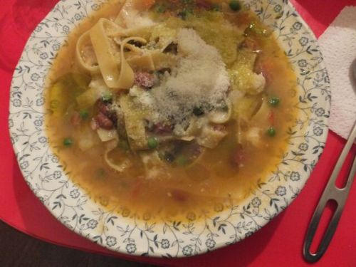 16日火曜日 この日も朝からパート。 パートの後、日本人方々のグループ展のオープニングに行ってきました。昔の手法で昔の絵画を模写します。とても本物のように出来上がるんです。興味のある方は、、メンズクラブのサイトのブログに載せたので、見てください。皆さん、お上手で感心します。その中の友人にも夕飯のミネストローネを差し入れしました。 娘と旦那は、学校の教科書を買いに行きました。イタリアでは、学校からクラスが決まると、教科書リストを渡され、それを持って本屋に購入に行きます。普通7月くらいにはリストがもらえて、本屋さんに予約が出来るのですが、娘の学校は、なんと開始された日に渡すので、当然全部はそろわないわけです。学校の先生は当然それは踏まえています。と言いますが、とにかく不便。当然本屋さんも、9月はたくさんの人が並びます。 夕飯は、久しぶりに昨夜から煮込んでおいたミネストローネ。美味しいです。 17日水曜日 朝からパート。ただ10時入りから、11時入りに時間がずれたので、手芸屋に寄ってから行きました。 この日は、この期間中にお手伝いに来ていた友達が最終日だったので、遅くまで働きました。 結構、ボロボロ。 娘は、中学校の時の親友と映画を見に行きました。青春を謳歌しています。イタリアでは14歳で高校一年生になります。小学校は日本に比べて一歳早く始まり、小学校は5年制です。中学校は3年制で、高校は5年制で、卒業する時は、18歳で、日本と同じ年に終わるんです。 夕飯は、ミネストローネを作ると、二晩はミネストローネです。 18日木曜日 朝からパート。今日から一人作業。さびしくなります。 夕飯は、 今日は疲れが溜まっているので、旦那の十八番を作ってもらいました。 19日金曜日 この日はパートがなくなり、朝から掃除。 ただ午後は、友達のところへ顔出しに行きました。 帰り道に、スーパーに寄って、お使い。 夕飯は、久しぶりにスーパーで新鮮なズッキーニの花が売られていたので、お花の中にモッツァレッラとアンチョビを入れて天ぷらにしました。大抵、にんじん、たまねぎ、ズッキーニも天ぷらします。ただ、バルサミック酢をかけて食べます。 20日土曜日 金曜日もパートだったので、朝、スーパーに買出しに行きました。この重たい荷物もなんで、私一人が買い出しに行くのか????? イタリアでは、高校になると土曜日も授業があります。 よって、土曜日も朝早く起きなければなりません。あーーキツイ。 ここでだ、またまた文句を言う旦那「あーあー、土曜日なんて!土曜日の授業がない学校に行けばよかった。」 てめーーーーーーーー!イタリアでは高校は5年制なんですね。最初の二年は授業時間が少ないために、週5日制でも可能なのです。ほかの文型の高校では土曜日なしクラスがあるのに、この娘の学校では一クラスもないんです。そこで、私は一時、ほかの高校を娘に薦めたのですが、娘と旦那はうちから歩いて通える高校を選んだのに、今頃、こういうことを言うかねーーー?????でした。13時頃家に帰ってきたら、御昼ご飯を食べて、14時15分には、家を出て日本人学校に向かいます。 待ち時間は、お母さんたちとバールでおしゃべりなのですが、途中、娘の小学校時代のママ友が、バカンス地のアラッシオより、美味しいお菓子のお土産を買ってきてくれたので、途中まで取りに行きました。(*こちらもメンズクラブのサイトのブログに載せてあります。) 夕飯は、 とんかつ!たまねぎのフライも作りました。 21日日曜日 お休み。 ひたすら洗濯。そして掃除。明日の午前中に通訳のお仕事が入っているので、掃除が出来ないので、しておきました。 夕飯は、旦那の居ない日スパゲッティ・ボッタルガ!!