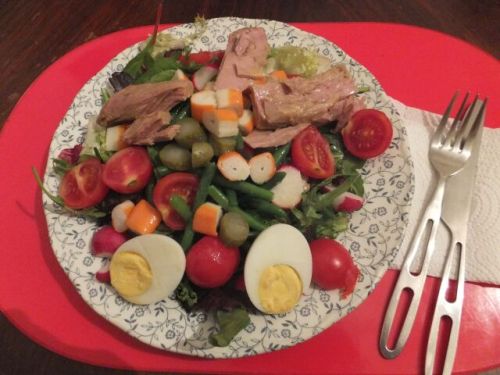 12日水曜日 朝11時待ち合わせで、夏ミラノに残っているお姉さんと待ち合わせして、ランチをしながら、ミラノ巡りをしました。暑い中、タフにミラノ中心を渡り歩きました。われながら驚きです。 夕方家に帰ると、パートの上司がチャイナタウンに来ていたので、会いました。 夕飯は、牛丼!やっぱり暑さに勝つために、牛肉が必要です。 13日木曜日 一日中洋裁。 というのも、洋裁の生地に型紙の位置づけをするときに、机をすべて必要とするために、一人でいるときでないと、なかなか出来ないものなんですね。 夕飯は、この日は、ゴージャスなニース・サラダ!!なぜなら、かにかまスライスと、スモーク・サーモンがついているからです。14日金曜日前に鉢植えした赤いバラはすっかり育ちました。たくさんあるので切って、飾りました。 さすがに今日はスーパーに買出しに行く必要があります。しかも、明日はイタリアの祝日でお休み、スーパーもしまっていて、+日曜日に残念ながら、娘と旦那が帰ってきます。 「もう少し長く居れないのか?」とたずねましたが、無理な話でした。スーパーで買ってきた桃!以前、シチリアで発見し、その時食べたときはあまりおいしくはなかったのですが、友達にいただいたときに、とても甘くて美味しかったので、それ以来ずっと買い続けました。タバコの箱桃と呼ばれています。 縫い物をして、 夕飯は、カニカマきゅう!とマグロ、日本食になると食べるものが多くなり、たくさん食べがちです。 15日土曜日祭日 次の日帰って来るために、この日が最後の自由な日、よって一日中洋裁です。 夕飯は、この日は、親子丼でした! 16日日曜日このように、朝食には、たくさんの果物をたべていました。お昼最後の晩餐。ちょっと涼しかったので、温かいおそば。最後の一人食事、おそばに納豆、カニカマ・スライスを入れてのご馳走でした。 残念ながら、夕方には到着してしまいました。 夕飯は、力をつけるほうが良いだろうと、ハンバーグにしました。