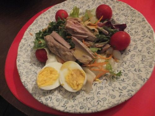 7日金曜日 さて、この日から夏休みです。ただ今年は歴史史上に残る猛暑+休みなしで働いたので、体は疲労レベル10なわけで、とにかく休みたい。 ただ、先日食べはぐった「すみれ」のぶっかけそばが食べたくて、友達を誘って、ランチに食べに行きました。しあわせ!やっぱり夏にはそばですよね。 午後は、スーパーに水の買出しとお使いに行きました。 夕飯は、夏にはこれが一番ですね。イタリアではニースのサラダと呼びます。かなりヘルシーな!一人のときは、たくさんの野菜と果物をふんだんに食べることにしました。 8日土曜日洗濯をして、朝は、チャイナタウンの中華食材店に買出しに行き、お豆腐屋さんでお豆腐を買って家に帰りました。このチャイナタウン近所で、豆腐が買える距離はかなりポイントが高い!!昼食は冷奴とそうめん。そうめんのおつゆにはオクラを入れました。おいしいなーーーー!! 午後からは、私の洋裁三昧の始まりです。(*この模様は、メンズクラブのサイトのブログに、ほぼオンタイムで投稿しました。)そして、この期間、かなりお休みしていた水彩画も久しぶりに復活! 夕飯は、冷凍にしておいたカレー。いい加減使わないと悪くなるので、このときとばかりに出しました。 9日日曜日朝はゆっくり朝食をしながら日本のテレビを見て大笑いをして、洗濯をして、昼食して、 ブログをしました。 その後は、水彩画と洋裁。とにかく、このシングル夏休み休暇中は、洋裁をすることにしました。 夕飯は、スモークサーモンが残っていたので、鉄板レシピサーモンとレモン汁、ねぎとEXバージン・オリーブ油と胡椒をかけていただきます。 10日月曜日朝から洋裁、一日中洋裁。*洋裁の模様はメンズクラブのサイトの「ミラノ・マダム」のブログに投稿しました。 夕飯は、デジカメの電池がなくて、写真が撮れませんでした。よって何を食べたのか覚えてません。11日火曜日さすがに家から食べるものが消えたので、スーパーにお使いに行きました。そして、洋裁。 この一人休み、とかく一人にならないと出来ないものを優先。洋裁をすることにしました。洋裁は特に生地に型紙を設置して、切るところが、とても場所が必要なので、一人のときにこういうことをやっておいたほうが、家族が帰ってきたときに、縫うだけなら場所もとらず出来て、便利だからです。 夕飯は、こういう日に限っていいマグロが売っていたので、ちょっと高めですが、買っちゃいました。そして、今回海苔巻きではなくシソまきでご飯を食べるとおいしいことを習い、はまっています。