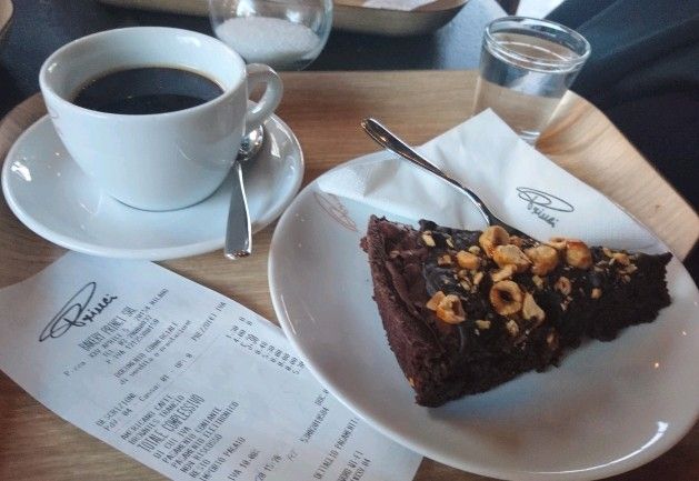 23日木曜日の午後は、近所のPrinciで、ママ友達とコーヒー。カロリー高めとは知りつつも、やめられません!チョコブラウニーの上に、キャラメルがあえられたヘーゼルナッツがのっかっている!これは、食べない方が無理!PrinciPiazza 25 Aprile.5