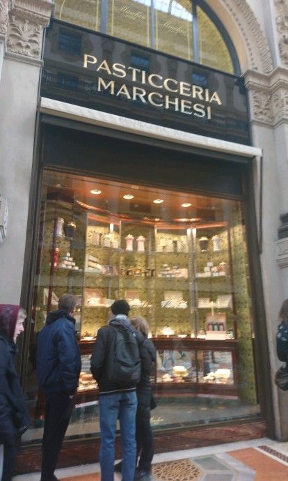 12日日曜日の午後は友人との待ち合わせは、Duomo大聖堂広場横のガッレリア下の、Prada本店斜め前のPrada店横のMarchesi菓子店横でした。そのようなところが出来たのかと、半信半疑で行くとありました!Pradaに買収されてから、モンテナポレオーネ通りにオープンしたり、ここPrada店舗内にもオープンしましたが、このようにショーウィンドウの横に、マルケージ菓子店のウィンドウまで並ぶようになったんですねーーーー。とこれは、新ニュースですね!