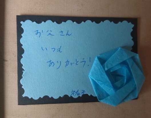 これもDaisoで購入の和紙折紙の水色でバラを折って、