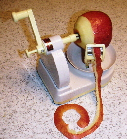 今年も大好きなりんごがたくさん!かくなる上は・・・・。 りんご皮むき器の登場です!!田舎のりんご、山形の従兄弟から、長野の弟から、顧問やってる安曇野から、お隣さんの青森から玄関には、りんごとビールの箱が溢れます。この時期、蜜の入った本場のりんごを毎日食べます。田舎に居った頃から毎日1個は齧ってました(他に食べるものなかった・・・)それが健康の素。どんな食生活でも、絶対おなかの調子が良くなります。タロとリロもヨーグルトとりんごは大好物です。デモ、皮を剥くのが面倒であると言うことになってきたのです。昨年は、その結果春になってジャムを作りました。どうやらりんごの有り難味が当たり前になって、りんごの皮を剥くのが面倒、剥いてあれば食べる!と言うことらしく。ついに、りんごの皮むき器を導入したのです。安価です、簡単です、本当に綺麗に剥けるのです。綺麗に剥けたりんごは本当に美味しいのです。大根の桂剥きの如く包丁で薄く長く剥く技術を自慢していたのですが、文明に利便性に負けました。因みにこの機械、青森のりんご青果農業共同組合が売ってましたが、京都から購入しました。物凄く安価で、気の毒でした・・・・・。絶対毎日1個~2個食べることなり、心なしかお肌もスベスベに・・・・そしてほっぺが真っ赤なりんごのように・・・・霜焼けカヨー・・・。