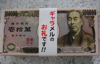 久しぶりに妻の実家のある(福沢諭吉の故郷)中津に行ってきました。これまでは、大分空港から杵築に出てJR日豊線で中津に、今回は、その日のうちに行かねばならず、北九州空港行きのスターフライヤー航空を見つけました。全日空との共同運航便でビジネス特急という感じ。真黒な機体のA-320エアバス、144人乗り全席TVモニター付き本皮レザーのゆったりシート飲み物も付くし、アテンダントさん?黒のコスチュームで別嬪揃い!日豊線にもソニックなる快適な特急も走っていた。ところで中津城、民間の所有(奥平さん)で3億で売りに出されていた。中津市は1.39億しか出せないとか、揉めている・・・???そんな訳で、この土産、福沢諭吉の10万円札束・・・これで城売って!*中身は、ただのキャラメル・・・入れ歯が外れる・・・・。