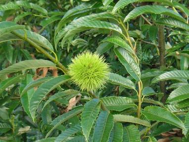 独特の花と、独特の匂いの栗の実が、イガに守られて大きくなってきました。まだ夏ですが、自然は着実に秋の準備をしているのです。イガが茶色になる直前の、中の栗の実は虫にも食べられず抜群においしいのです。渋を爪で剥いて、生で食べるのです。♪「青栗ひとつ、屁八十・・・・」♪田舎の子供の歌でした。