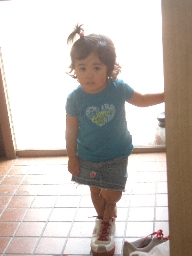 涼しくなってきたので今日はデニムのスカート赤ちゃん赤ちゃんしていたときはあまり似合わなかったのが少しお姉ちゃんになると、なんだか生意気にも似合ってきてます。。。今年1月に購入したスカートとCheekyのTシャツ昨日に引き続き今日も靴で遊びました。玄関の鏡の中にいる自分になにやら大声で話しかけていました。今日も笑えます。。。。お昼寝の時スカートを脱いでバイクパンツに履き替えると今度はスカートをコック風に帽子としてかぶりたがる。ウエストより頭の方が小さいのかスカートがずり落ちると、昼寝前で眠いからか激怒。かと思いきや今度はママの携帯で遊んでご機嫌。今日の陽は機嫌がころころ変わって大変でした。鼻水も出てきたし季節の変わり目で体調を崩したのかなぁ???