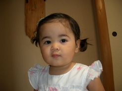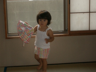 日本の夏が予想以上に暑くて最近、陽も私もへたりぎみ。。。。できるだけ涼むものを食べたり一日2回シャワーを浴びたりしていますが、これからまだ猛暑の8月が来ると思うと、考えるだけで気分が暗くなるほどです。今日は陽の髪の毛をくくってみました。すまし顔。