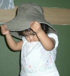 依然、お外へ行くときに帽子をかぶるのを拒む、陽ですが、おうちにいるときは帽子がおもちゃと化して楽しそうに遊んでいます。今日は大人用の帽子を試着お顔がすっぽり隠れてしまう。ちょっとつばをたてると、可愛いお顔が出てきたよ。あっ、でも帽子なしの方がいいかもねぇ。以上、ママのつぶやきでした。