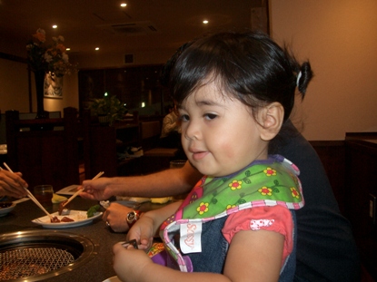 今日はパパの34回目の誕生日です。出会ったのが7年以上前、出会った頃はパパも若かったなぁとつくづく思うのですが、気持ちは(と言えば聞こえが良いが要するに精神年齢)、まだまだ少年のようなパパです。ワードローブのほとんどがアバクロ、趣味はマウンテンバイク。そして明日は結婚記念日。知り合って7年半、正式にコンビとなって6年、色々なことがあったけどやっぱり最後の気持ちは感謝かなぁという気がしています。*****今日は弟が焼肉をご馳走してくれました。焼肉屋でも絶好調。周りのお客さんにも愛想をふりまくり食べるのにも大忙し、、、のわが娘。朝は近くのマンションの公園へ行ってしっかり遊びました。他のママさん&子供たちもいるかなぁと思っていたのに広い公園に私と陽二人。。。。時間帯(朝の10時半ごろ)かな。*********昨日に撮った写真、最近このポシェットがお気に入りみたいです。この場を借りて、マチャ、ありがとう!産まれたての頃はポシェットを使う日が来るのが果てしなく遠く感じたけど、もうそろそろ使える頃になってきたヨ。感涙。