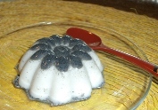 今日のデザートは黒ゴマ牛乳プリンパンに塗る黒ゴマペーストを入れただけの簡単かつおいしいデザート黒ゴマが下に沈殿するのでお皿にだしたとき、色合いがきれい
