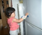 最近の陽は冷蔵庫についているマグネットで遊ぶのに夢中キッチンが対面式でないためリビングで一人遊んでいるときは心配で心配で。だから私がキッチンにいるときは冷蔵庫付近にいてくれるのが助かります。今日も夢中でマグネット遊び赤、黄色、青などのマグネットをひっつけてははがして、自分のなかのシナリオ?や発想で一人で遊んでいます。独り言を言いながら。ウエストのところにギャザーが入ったトップスのせいで、お腹もぽっこり。いくらお腹をカバーしてもすぐに上がってしまいます。**************アメリカのCMみたいにI’VE GOT MILK ではなくヨーグルトひげです。**************お習字の先生のお宅になっているミントを先日のお稽古のときに頂きました。ミントってこんな赤い花が咲くなんて知りませんでした。蜜を吸うと甘かったです。お風呂にも入れるとすごくいい香り。たくさん頂いたのでとりあえずピアノの上に飾っておきました。