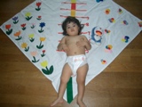 今日はお風呂上りに陽と昔のアルバムを見ていました。私の母がスクラップブックにしてくれた思い出&愛情ぎっしりのアルバム。日本に帰ってからまったくページの続きがない。。。。です。3冊目の最初のページがこれ足型の軌跡です。これを見ながら陽が自分の足を指していたので”これはアシっていうねん”と教えるとアシ、アシと連発。アツイアツイ(アチイアチイ)と似ている部分はあるにせよ、何度もそのページに戻ってはアシ、アシ、といっていたのには正直びっくり。物事には名前があるっていうのがいつのまにかわかっているんですね。