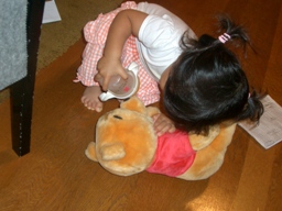 毎日さまざまな新しい才能(芸?)を発揮し私たちを楽しませてくれる陽ですが今日は、プーさんのぬいぐるみにお水をあげていました。ちょっと無理やりっぽく見えるけど本人は必死。これからもっと進化して、おままごととか楽しむんでしょうね。ママのようにお水をあげていましたから。。。******自分の靴が脱げて、”くつ、ない”と教えてくれました。くつがない、、、、意味のある単語を二つ並べることが出来ました。その他の最近のボキャブラリーはかめさんAgua(スペイン語の水)Ninos(スペイン語で子供たち)あーとー(ありがとう)かゆい**********今日の夕ご飯もワンプレートで。。。。たくさんあるレタスをコールスローサラダに。松の実をかけて。**********書道の先生に頂いたピンクのバラハルはこれを見て、アカ、 アカ (赤)っていいます。ちょっと惜しいけどOKです。