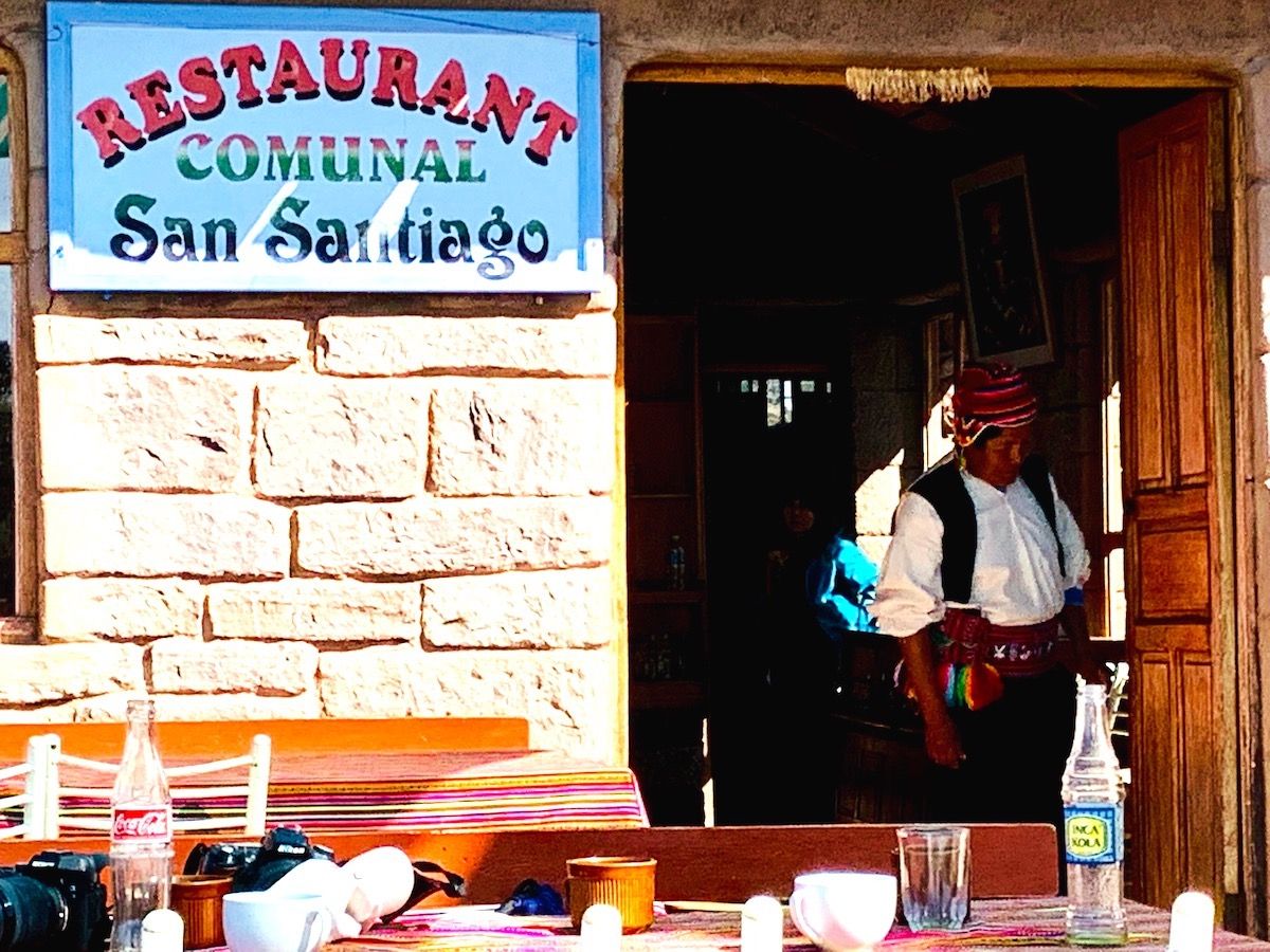 チチカカ湖での儀式の後は、タキーレ島(Isla Taquile)へ。ここは、プーノから45Km、船に乗って片道3時間くらい離れたところにある人口約2200人の純粋ケチュア民族の島です。