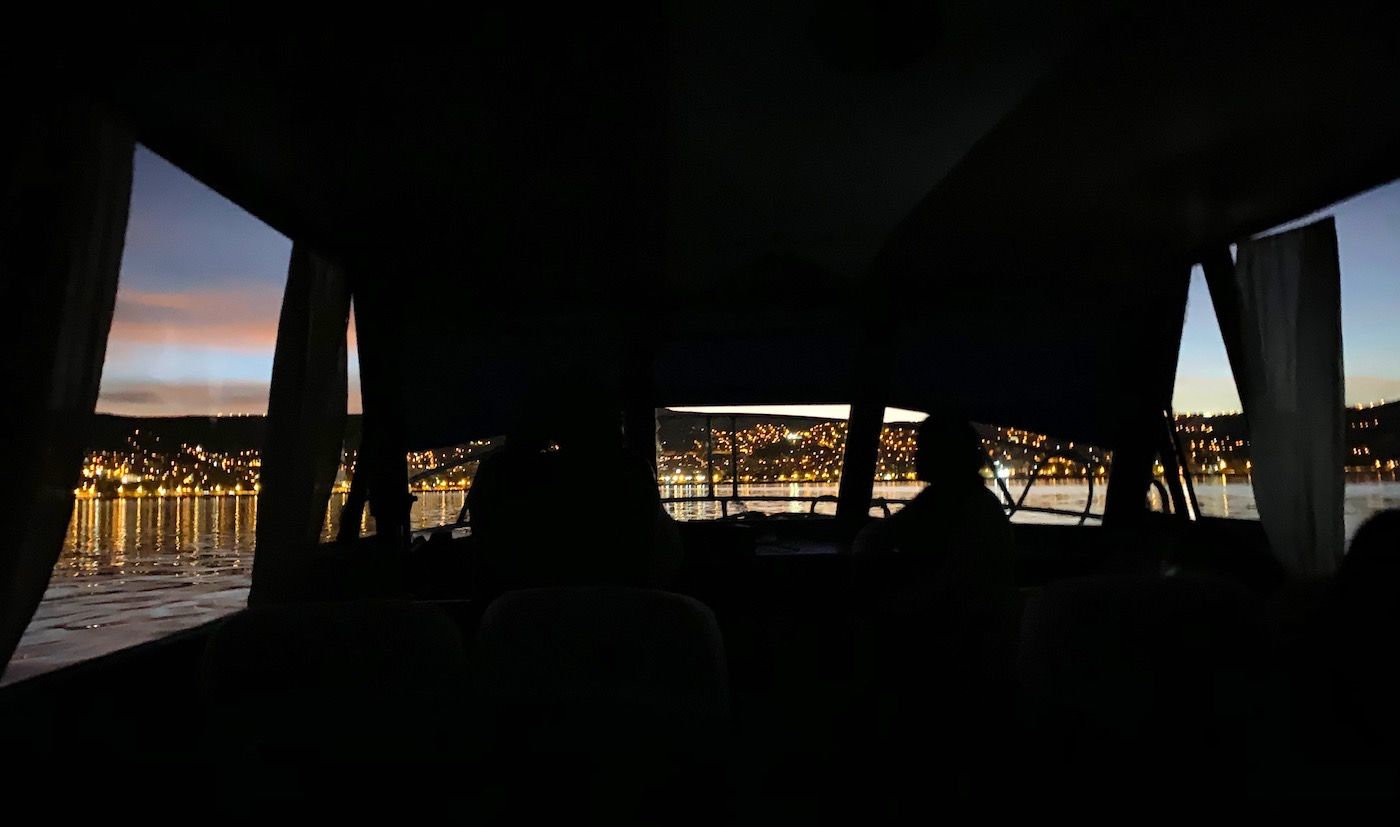 そして優しい島の船長さんに連れられてプーノの港に戻った時には、もう夜景の綺麗な夜になっていました。