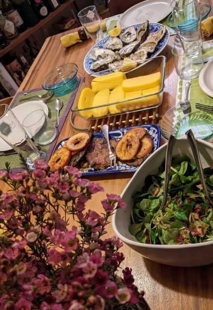 大荒れと言っても幸い家庭のことではなくお天気。このところずーっと嵐の日々で参ってしまっている。雨はともかく強い風がずっとふいていて落ち着かない。先日は雹やボタ雪が混じったり、夜も雨戸に叩きつける雨の音で何となく寝付けなかったり。お坊ちゃんのサッカーの練習はこんな天候でも容赦なしで、コーチだってやる気がなえるお天気のはずだけど張り切ってトレーニングをしてくれている…、ことには感謝しないといけないのかも。でも週末フランスのThionvilleで行われた親善試合の間だけ青空が広がって久しぶりに気持ちのいい陽気だった。その前後のお天気は最悪だったのだからすごく運がよかった☆しかも新年初白星☆☆試合前に強敵だと聞いていたのでさらに喜びアップ☆☆☆なんか気持ちがだるいなぁ~と言っていたら我が家のメンズが二人で美味しい晩ご飯を作ってくれた。小牛のレバー焼き、ポレンタ、Feldsalad(フランス語だとmâche、日本では何と呼ばれてるのでしょうか)とドライビートルートのサラダ、それに生ガキ。お供はビール。厨房の男子はカッコイイ、と個人的に思ってる。しかも二人で楽しそうに美味しいものを作ってくれてどうもありがとう。おいしかったよ、ごちそうさまでした♡