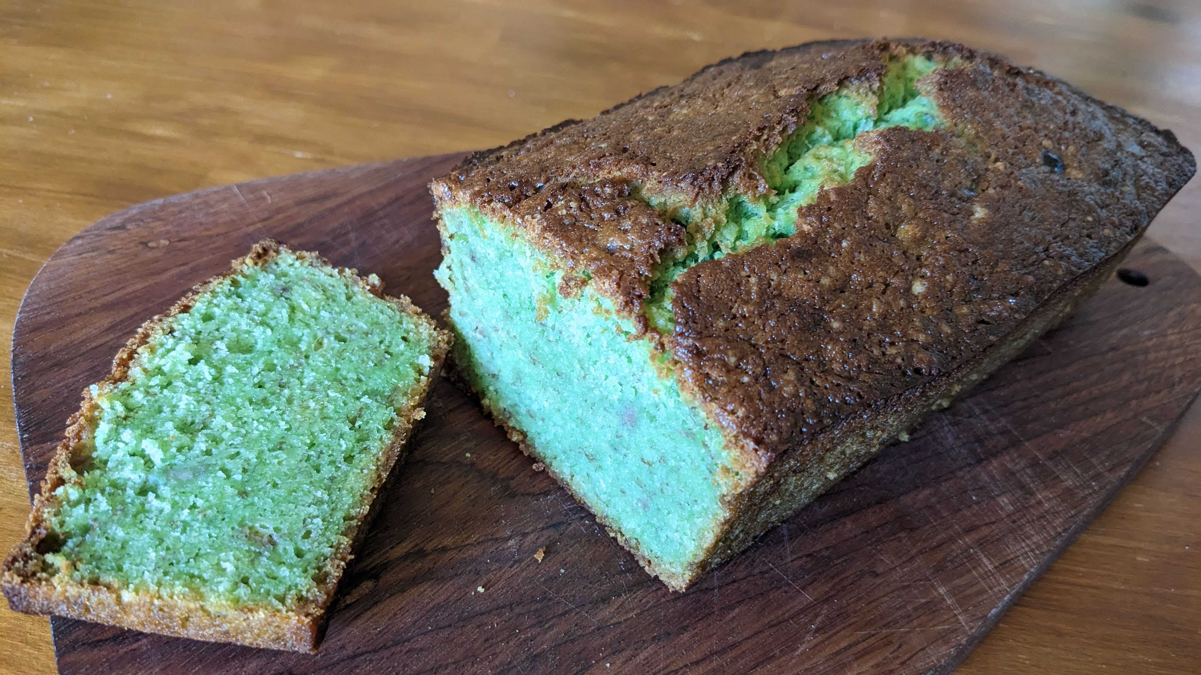 マレーシアで愛用されているパンダンリーフ。アジアのバニラともよばれているのだそうで、ほんのり甘い香りと鮮やかな緑色が特徴。生の葉はもちろんこちらでは見たことがない。が、当地のアジアンショップでパンダンシロップなるものを発見した!マレーシアでお馴染みのおやつ、オンデオンデはこれで何度となくすでに作ってみていて毎回少しずつ味が良くなってきている気がする。言ってみれば砂糖入り白玉なのだけど、生地にパンダンシロップを入れて香りと色付けをするのとパームシュガーの塊を生地でくるんで湯がくこと、それに出来上がったお団子におろしたココナツをまぶす、とこれでいつもの白玉がマレーシアンスイーツに変身する。マレーシアに移ってすぐの頃ご縁があってとても素敵な自宅でマレーシア料理を教えている女性と知り合って、少し彼女の仕事を手伝ったりレシピを頂いたり…。懐かしくなってネットで検索してみると、教室を閉めたとのお知らせが…。ショック。でも活動的な彼女の事新しいビジネスに取り組んでいるはず。庭から切ってきたパンダンの葉っぱを使って作ったオンデオンデや他のマレーシアごはん、他にも調理に使う様々なハーブがたくさん植えられている裏庭、緑あふれる大きな庭、池のカエルをくわえて鶏(アヒルだったかな・・・)が走っていくのを見て大笑いしたり、懐かしいなぁ。バナナに茶色いそばかすが浮かび始めるといつも作るバナナケーキ。これに今回はこのパンダンシロップを入れてみた。これがまたおいしかった~♪基本のレシピ:バター110g、ブラウンシュガー1カップ、小麦粉2カップ、ベーキングパウダー小さじ1,卵2個、完熟バナナ2本、叩いたクルミ大さじ2オーブンを180℃に温める。バターと砂糖をクリーム状になるまでよーく混ぜる。混ぜた卵とフォークでつぶしたバナナとくるみを加えて混ぜる。小麦粉とベーキングパウダーをふるって加えざっくり混ぜ、バターを塗った型に流しいれてオーブンへ。50分から1時間焼く。今回は生地にパンダンシロップをとろーっと加えてみたけど、代わりにココアを入れたり、シナモンパウダーにしたり、レモンやライムの皮をおろして入れてみたり、バナナの代わりに酸っぱかったキーウィを大きめに刻んで入れたり......、諸々自在のレシピです。