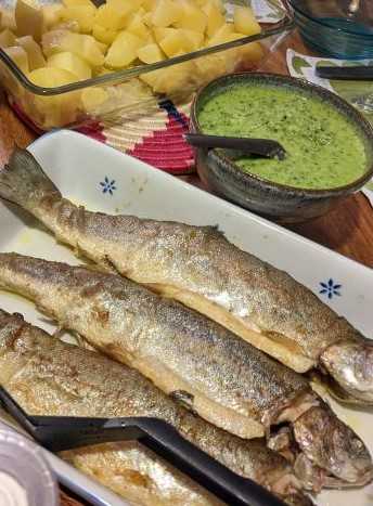 先日食した魚が、日本語だと鮎ではなく鱒だと判明しました。フランス語でtruite、ドイツ語でForelle。身体に斑点があるのはマスで鮎にはなく、鮎はもっと小ぶりとのこと。なるほど。でも三國シェフのレシピはマスでもばっちりでした☆☆☆