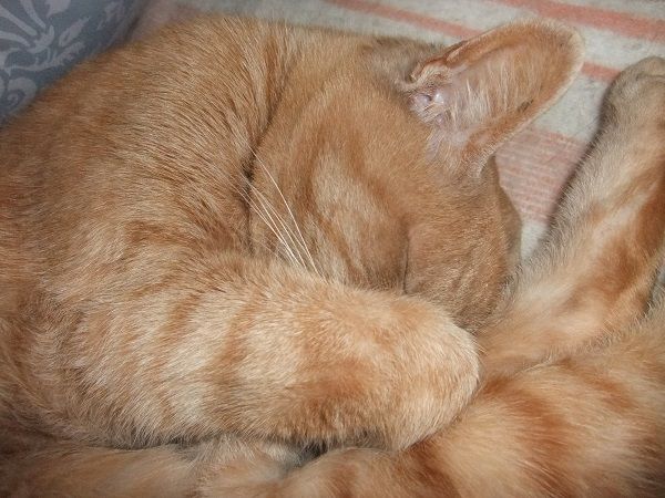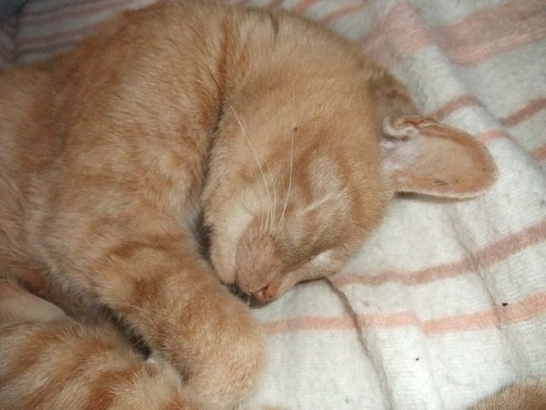 猫ちゃんは、立春以来、夜遊びの癖がつき、夜の12時頃に外に出て、朝8時前に帰ってくるようになった。 夜行性の本領発揮で、この寒空に何をしているのやら。 という訳で、家に帰ると爆睡する。 周囲が明るいので、前足で目を覆うようにして寝ている。