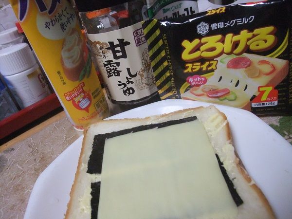 もらい物の味付け海苔が沢山あるが、基本的にご飯は夕食のお弁当の時だけだ。 おかずが多いので、なかなか海苔の出番がなかった。 そこで、朝食の食パンと一緒に食べようと思い、いつものバターとチーズの間に挟んで焼いてみた。 オーブントースターから出した瞬間、海苔の良い香りがして、いつもとは違った新しい味がした。 海苔は薄くてペラペラだが、トーストの味を一変させるほどの存在感がある。