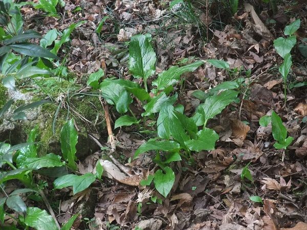 今年も庭の定位置に、ウバユリ(姥百合)の若葉が生えてきた。 多年草だから、毎年同じところに生えて咲く。 夏には、白いラッパ状の花が咲く。 昨年の夏に咲いたウバユリ。 2019年7月26日撮影