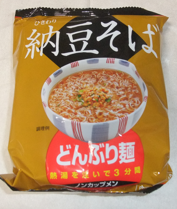 ノンカップ麺の『納豆そば』を食べてみた。 この前食べたノンカップ麺のラーメンは、はっきり言って、カップ麺の方が味に深みがあった。 今日食したのは日本蕎麦で、中に挽きわり納豆が入っている『納豆そば』だ。 納豆が好きな人には、堪らない美味しさだ。 粉末スープの袋を開けた途端に、納豆独特の香りが漂ってきた。 それを乾麺の上に振り掛けて、お湯を入れて3分で出来上がりだ。 病み付きになりそうな味である。 『納豆そば』はマニアックなので、カップ麺にはなかったと思う。 『納豆そば』 『調理後』