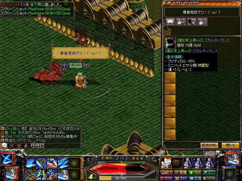 どうも、3度目まして初めての方はじめまして、そうじゃない方はこんにちは今回のはドロップはないのですが、前回増幅した骨首を再構成したのでその結果を書こうかなと思い更新します。前回に続き今回も緊張のあまり再構成をしてるSSはとり忘れてしまいました。結果を書く前に某友人から再構成の画面で5分放置すると(本人曰くホントに再構成しても良いのか)悩むと成功するとの情報を得たので悩む必要もないのですが5分間悩む振りをしてからの挑戦です。結果はこちら完成です!うれしい限りです。これから他の部分の運比率1/2装備を整えてモリネル外周に乗り込んでいきたいと思います。 ~オマケ~最近麻雀にはまったエスパルです、ギルドのメンバーとハンゲームで麻雀をしていたとき自分に麻雀の神が降り立ったようです今回の更新は以上です。見てくださった方ありがとうございました。