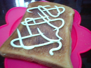 朝ごはんはトーストにマヨネーズです。なかなかいけますょ。