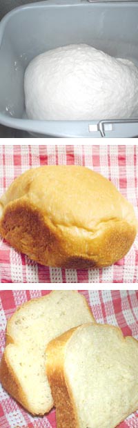 このコースは、ねり25分、発酵40分、ガス抜き、発酵50分、ガス抜き、焼き45分。