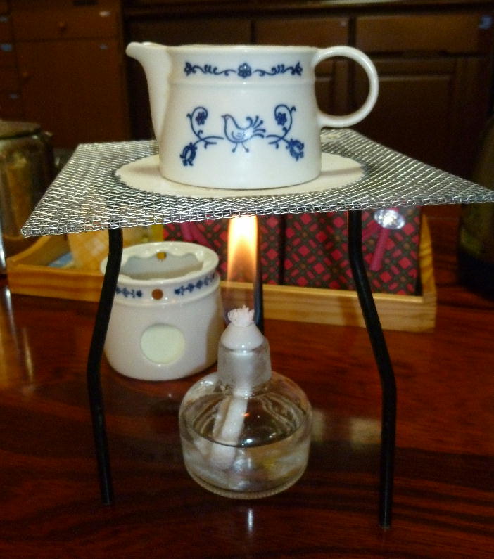 アルコールランプを時々ともしています。15年以上愛用しているアロマポットのポットを乗せることが多いです。キャンドルより早く温度が上がるので疲れた時には早く香りが広がるので重宝しています。子どもの頃理科の時間にアルコールランプを灯すのはとても楽しい体験でした。灯りを見ると心が和みますよね^^