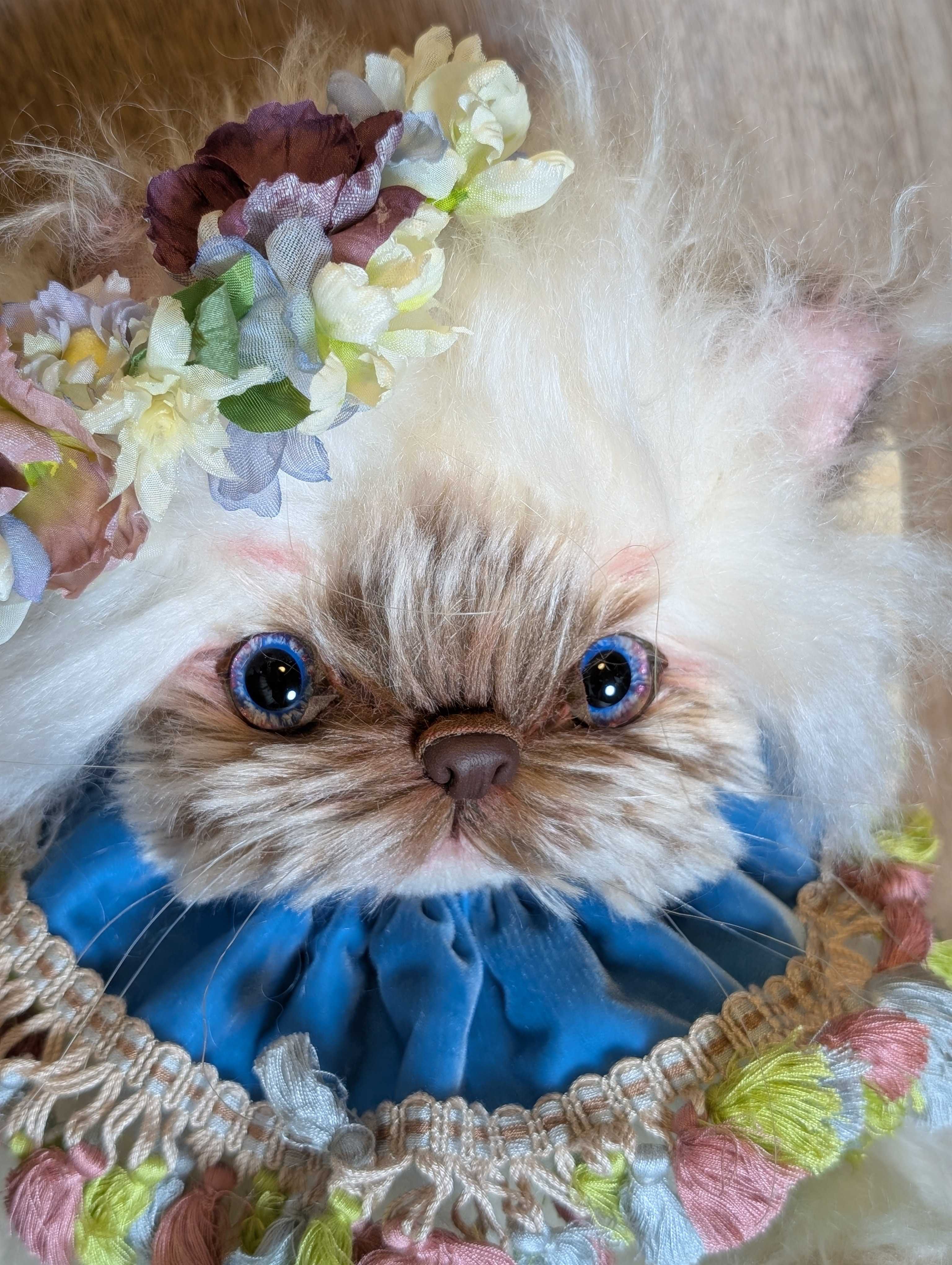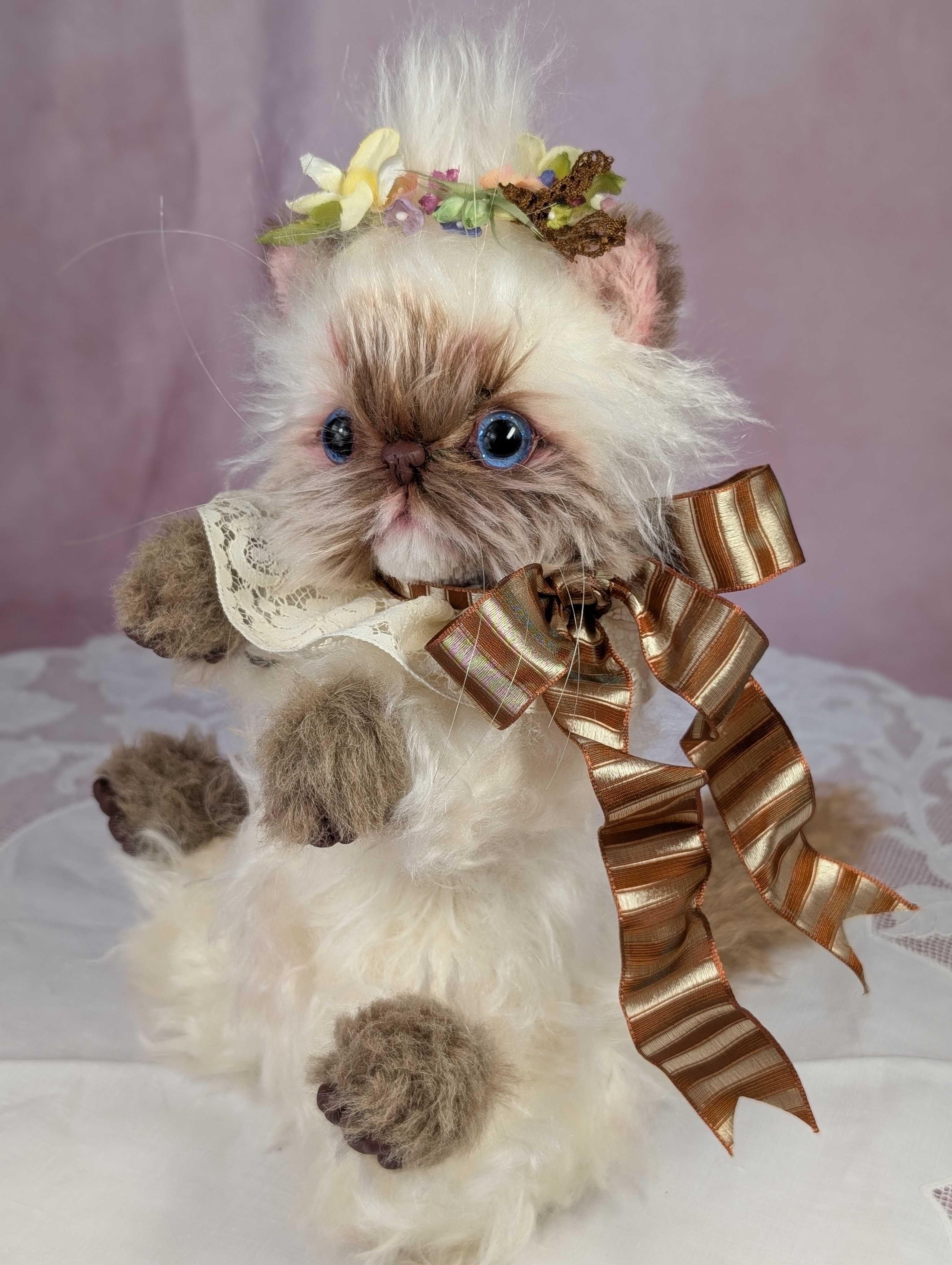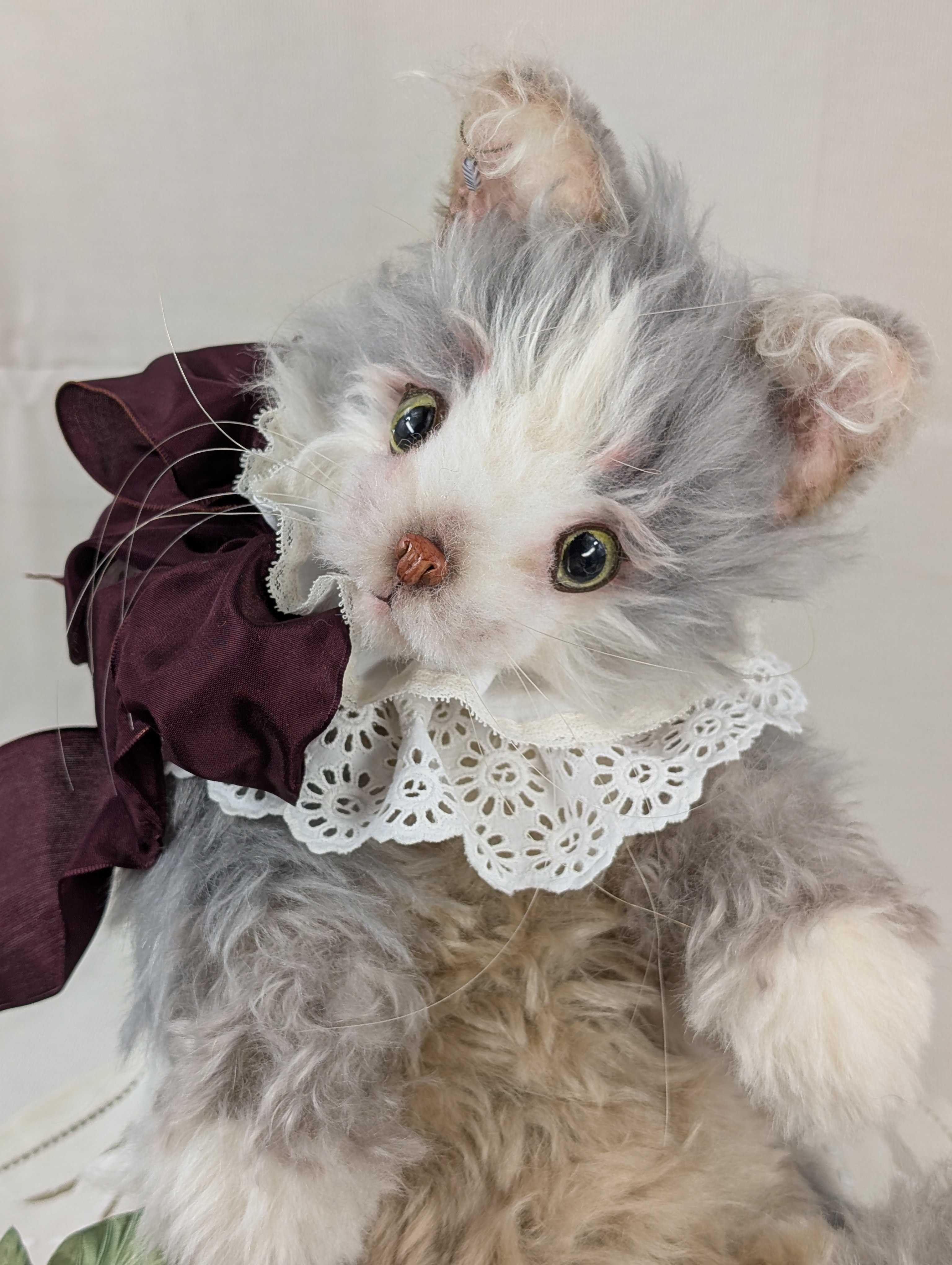 「京都テディベア博覧会ときどきアニマル」 2025年9月6日(土) 10:00〜11:00(プレビュー) 11:00〜17:00一般入場(入場は16:30まで)会場:京都文化博物館 別館 販売作品は全部で8点。最後、8点目のご紹介は、ミヌエットのクルトン。昨年の1day講習会でレッスンした、あの猫ちゃん。やっと完成ちょっと、お茶目さんに仕上がりました!京都での販売方法を、このあとお知らせします。