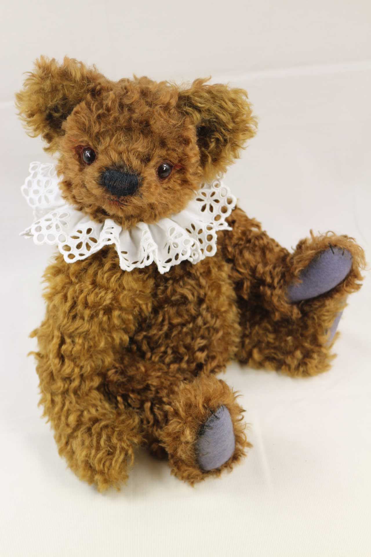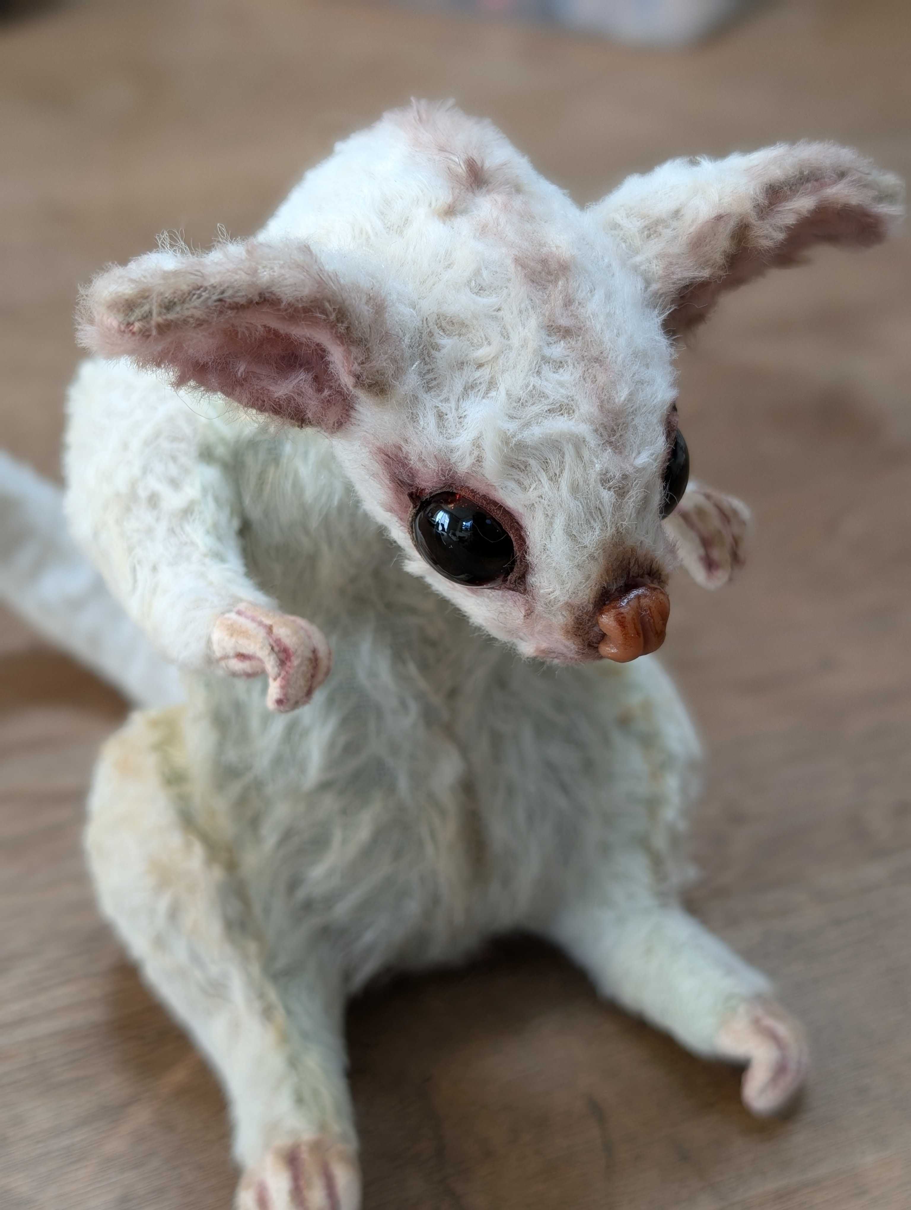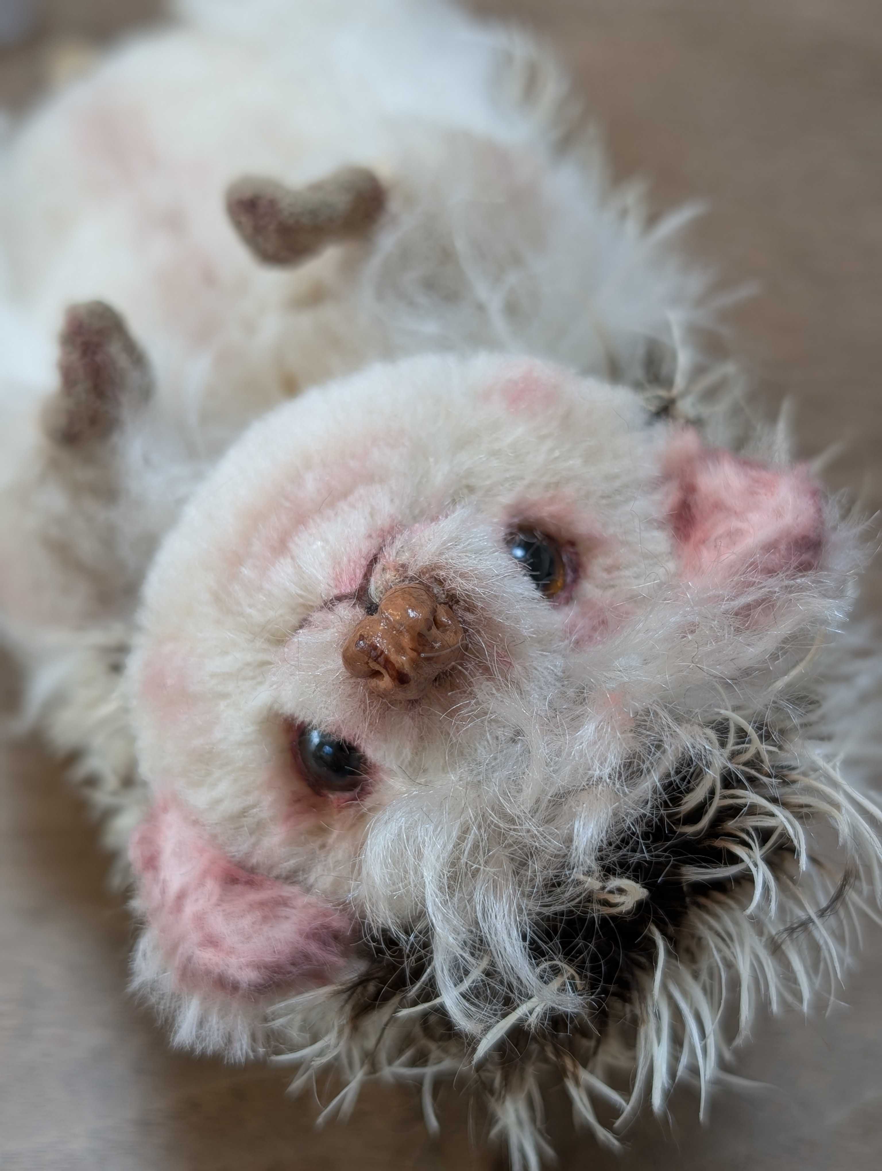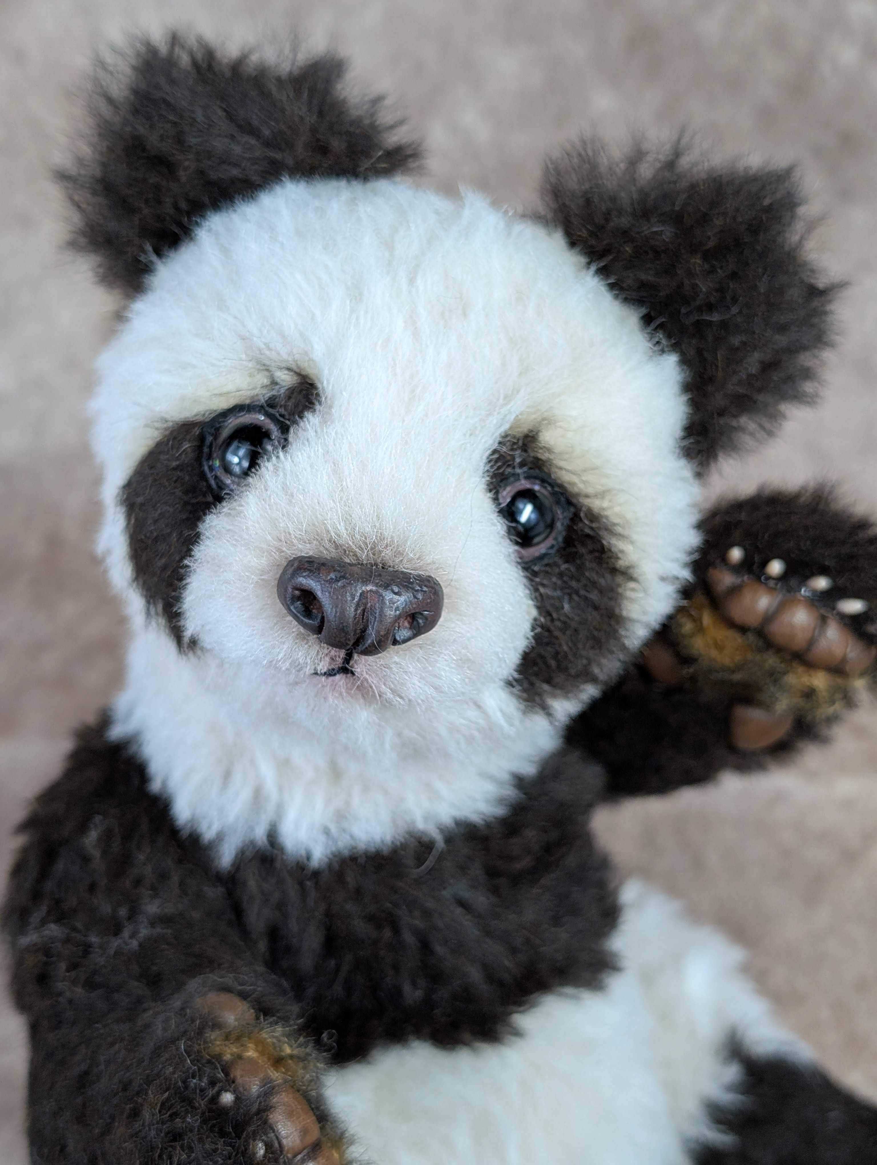 今日はパンダくんのご紹介。以前、手足だけをアップしたことがあります。手足の肉球だけでパンダだ!と言い当てた方がいらっしゃいましたっけ。手足がリアルなので、お鼻もケモノ仕様にしてみました。ベアでこのお鼻にしたのは初めて。意外としっくりくるのに驚く。これからは、こんな作品にも挑戦したい。