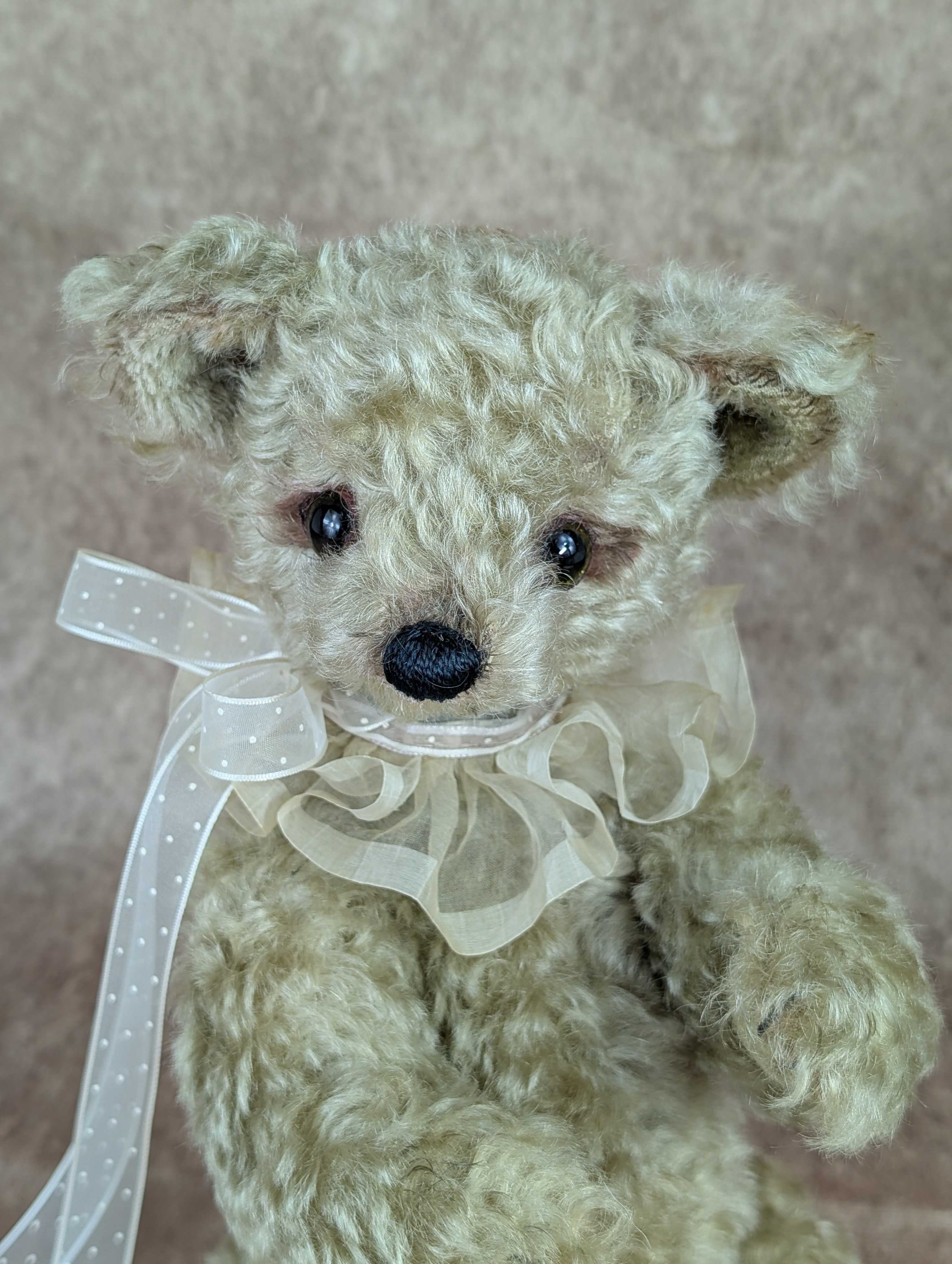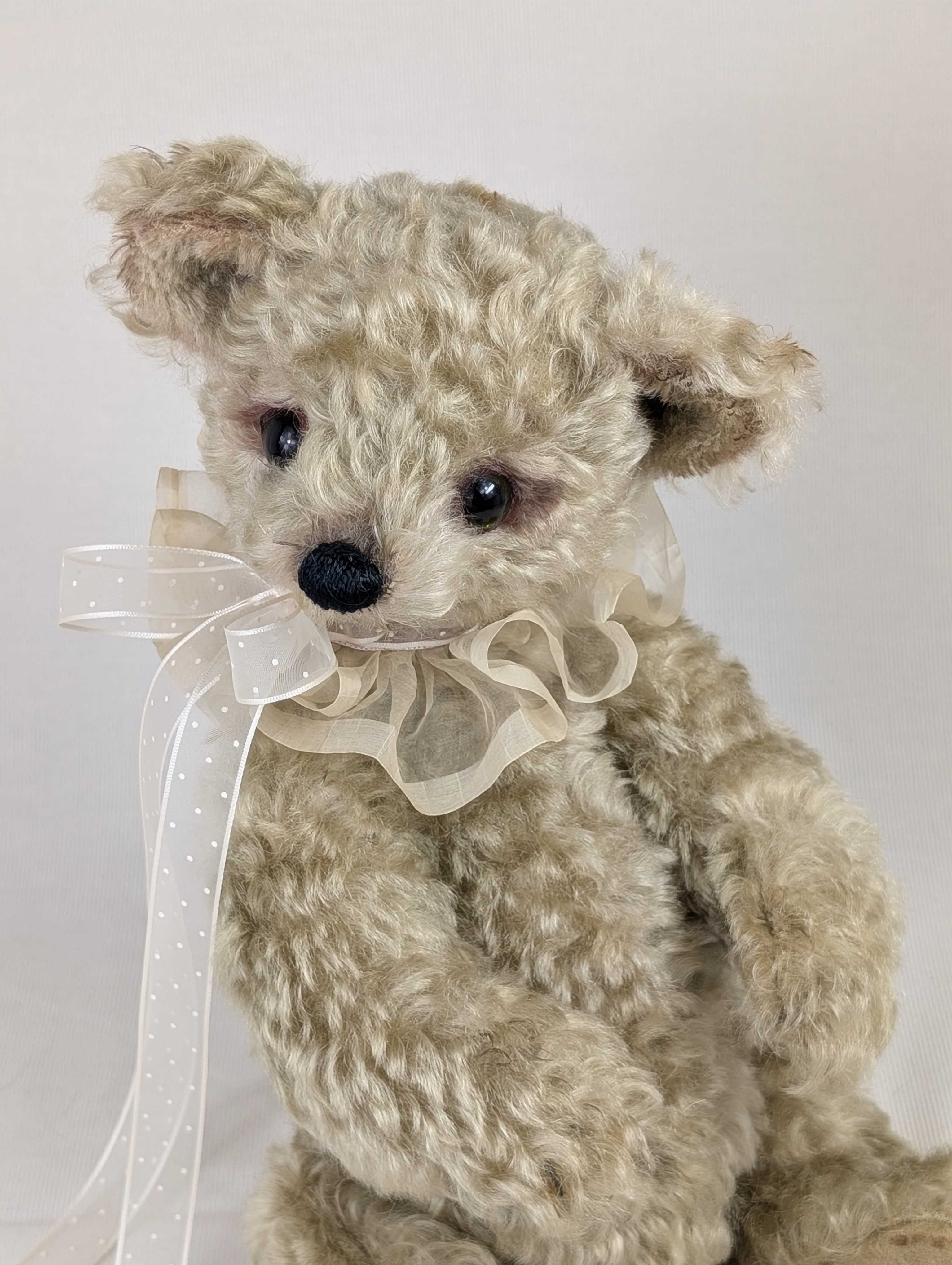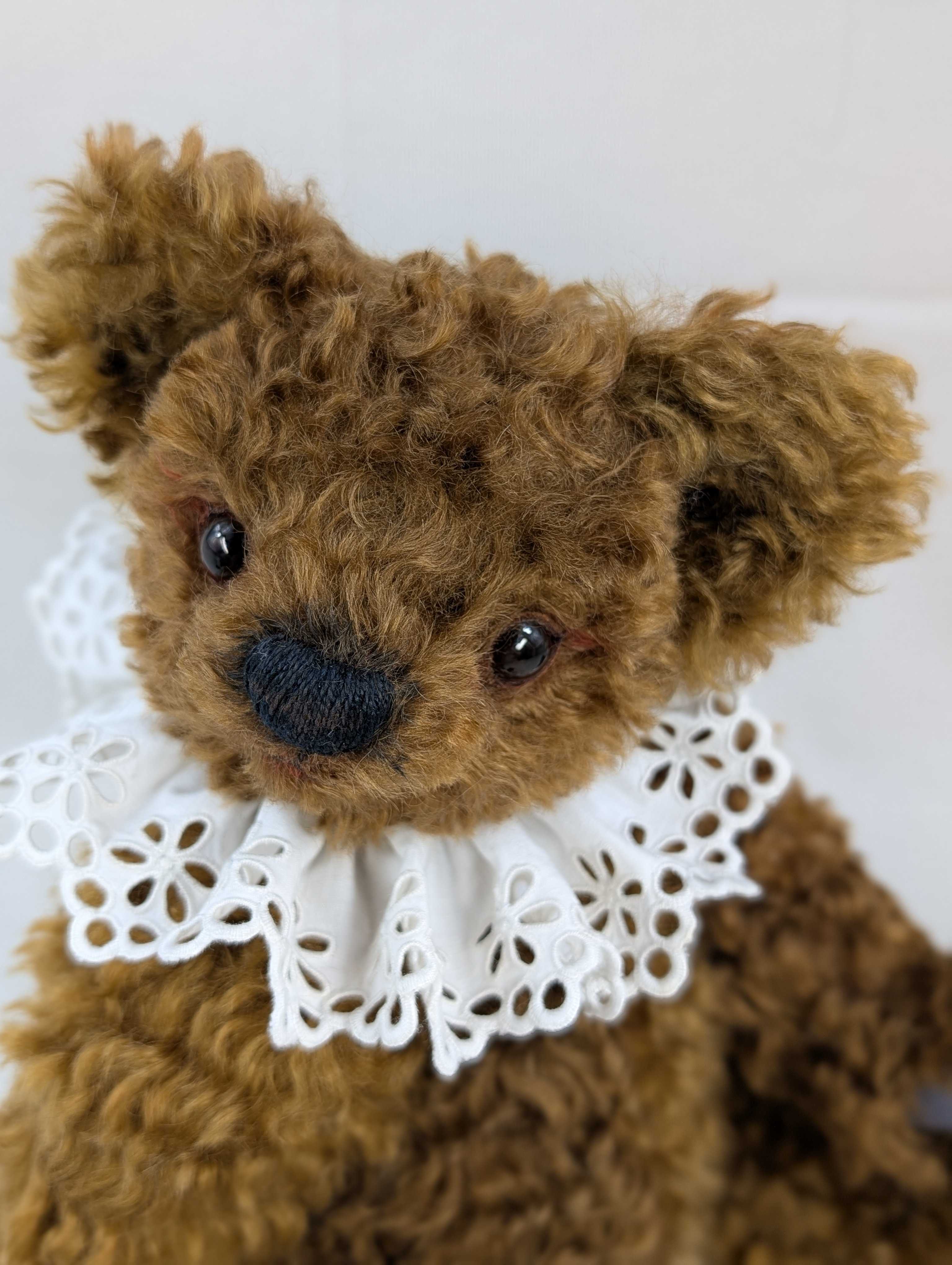 「京都テディベア博覧会ときどきアニマル」 2025年9月6日(土) 10:00〜11:00(プレビュー) 11:00〜17:00一般入場(入場は16:30まで) 会場:京都文化博物館 別館 販売作品は全部で8点。6点目のご紹介は、ゴージャスモヘアのベア。地色とモヘアの色が違う、2wayタイプを使っています。大きなお鼻が魅力.。2023年ドイツGolden Georgeノミネート作品。今回、京都は初めての記念すべき(ベアイベント)なので、連れて行くことにしました。関西では初のお披露目です。