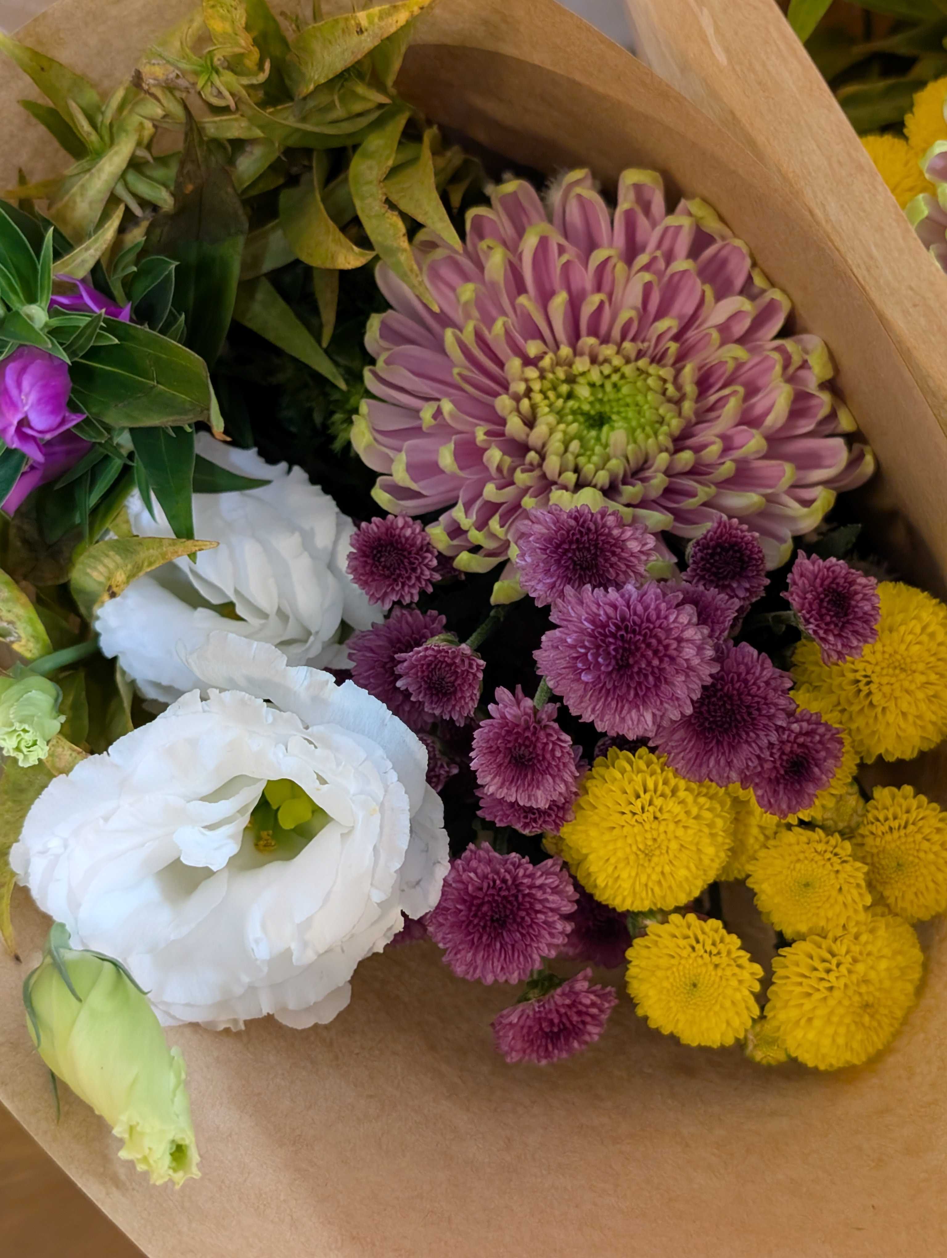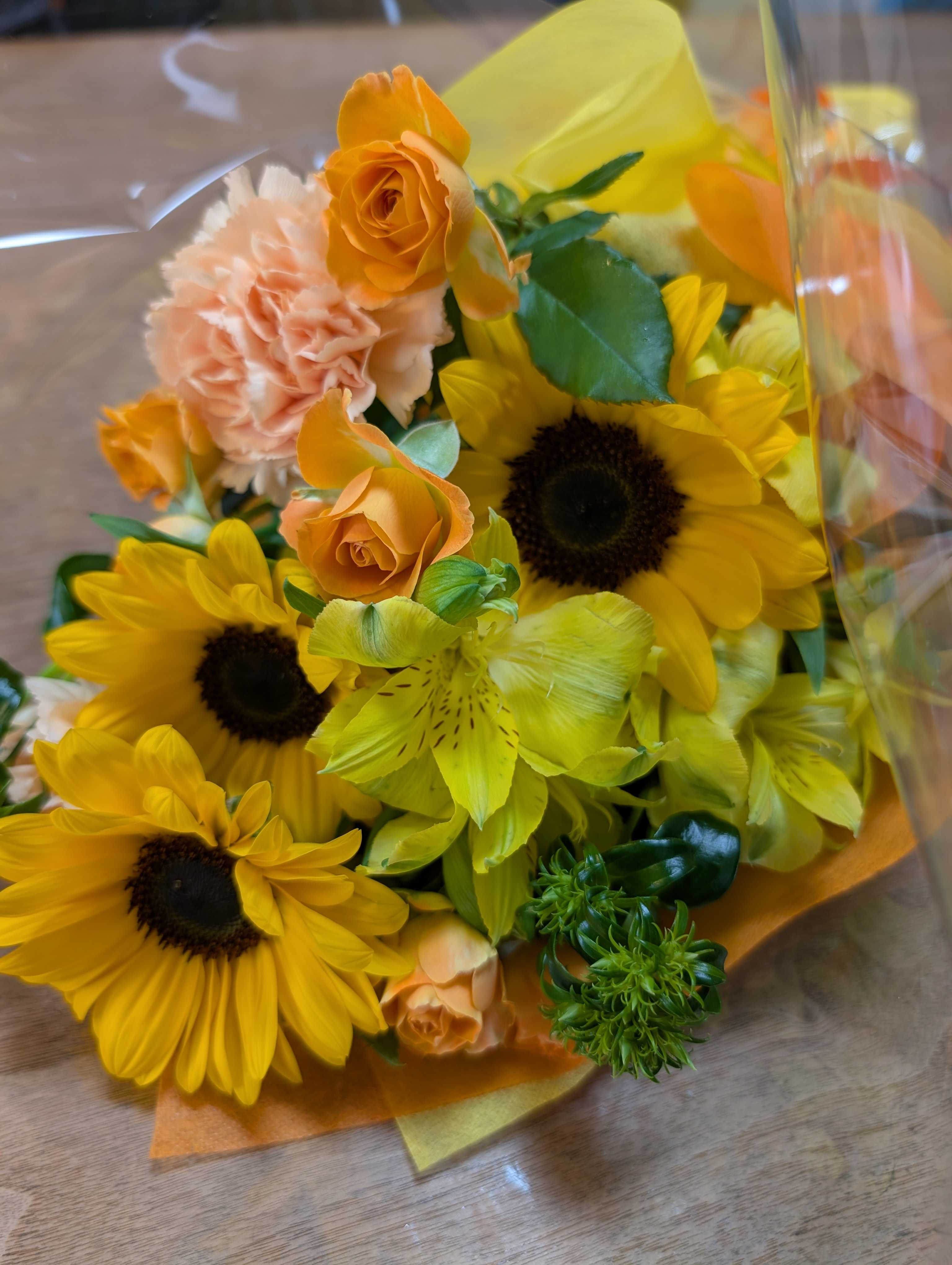 久しぶりの投稿です。明日は誕生日。お花屋さんから突然の花束プレゼントが届きました。今年からお得意さんへの贈り物を花屋さんが始めたらしい。普段はお花を選ぶ立場だけど、自分にお花のプレゼントが届くとなんだか嬉しい。