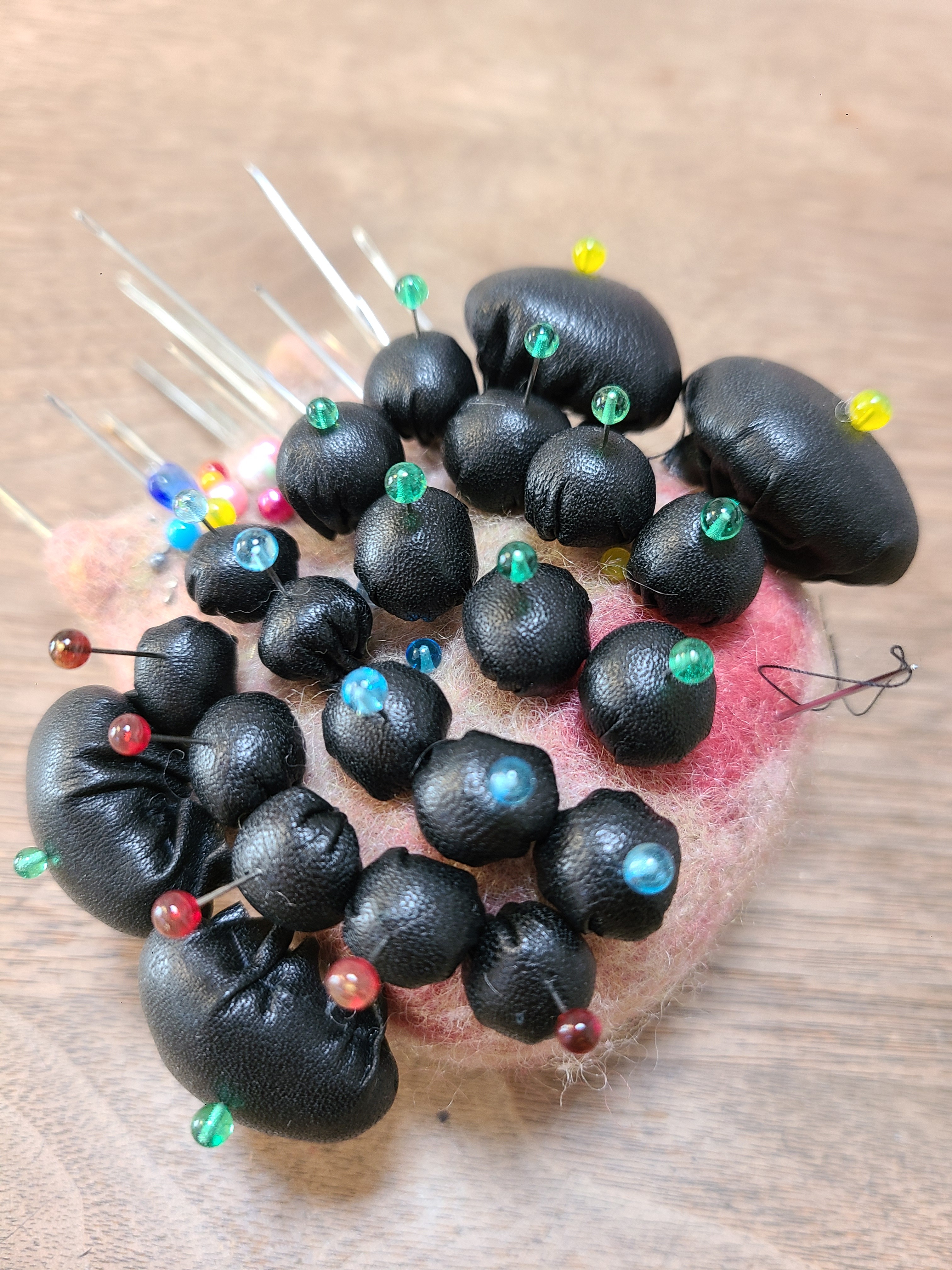 猫の肉球~🐾これで1体分です。23日のロンドンハグレッツに連れていく、大型猫用。これを今夜には、全て縫い付けたい。
