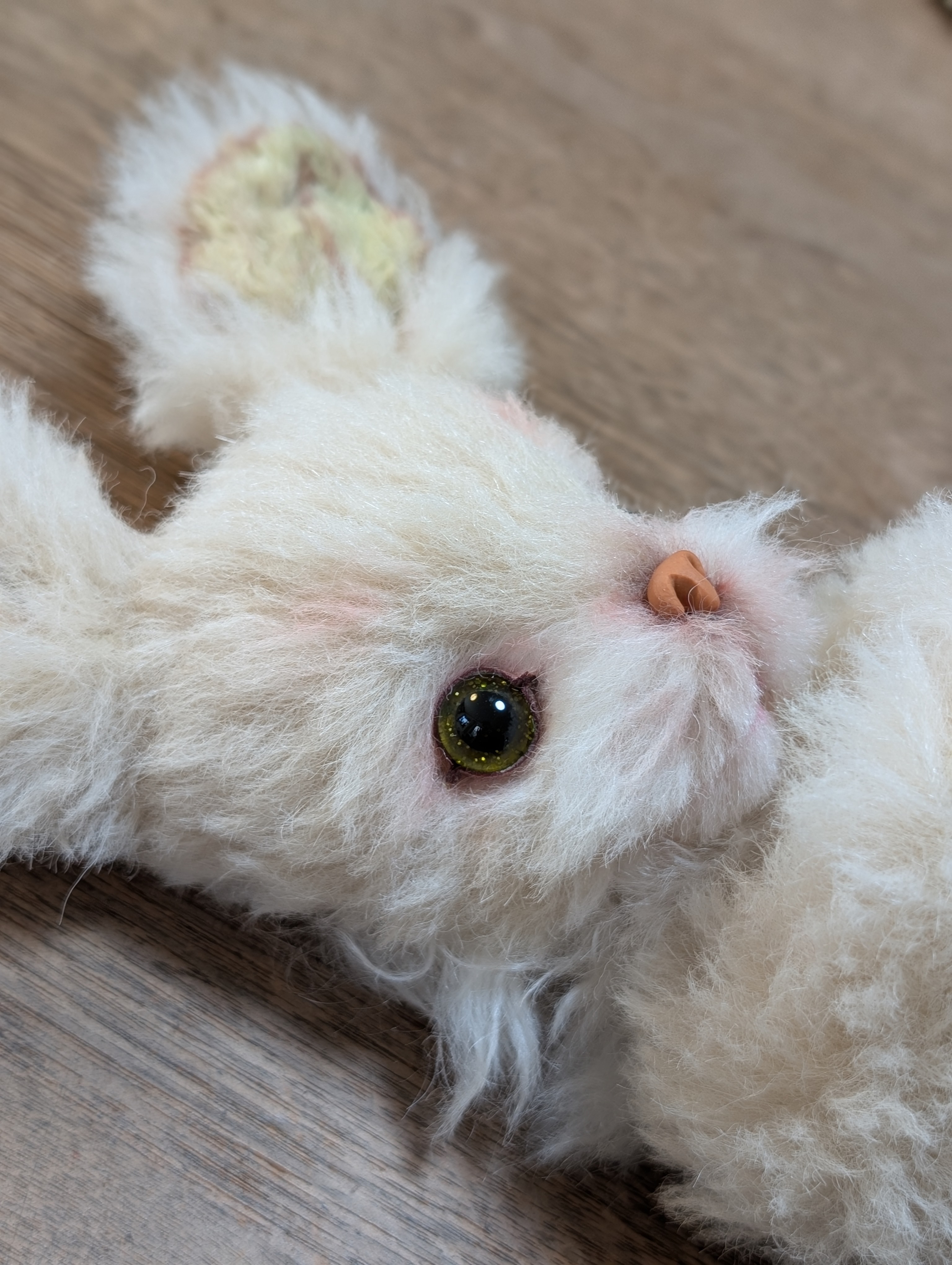 只今、ウサギのサンプルを作ってます。グリーンのお目々が特徴的。爽やかな印象です。完成までもう暫くお待ちください。