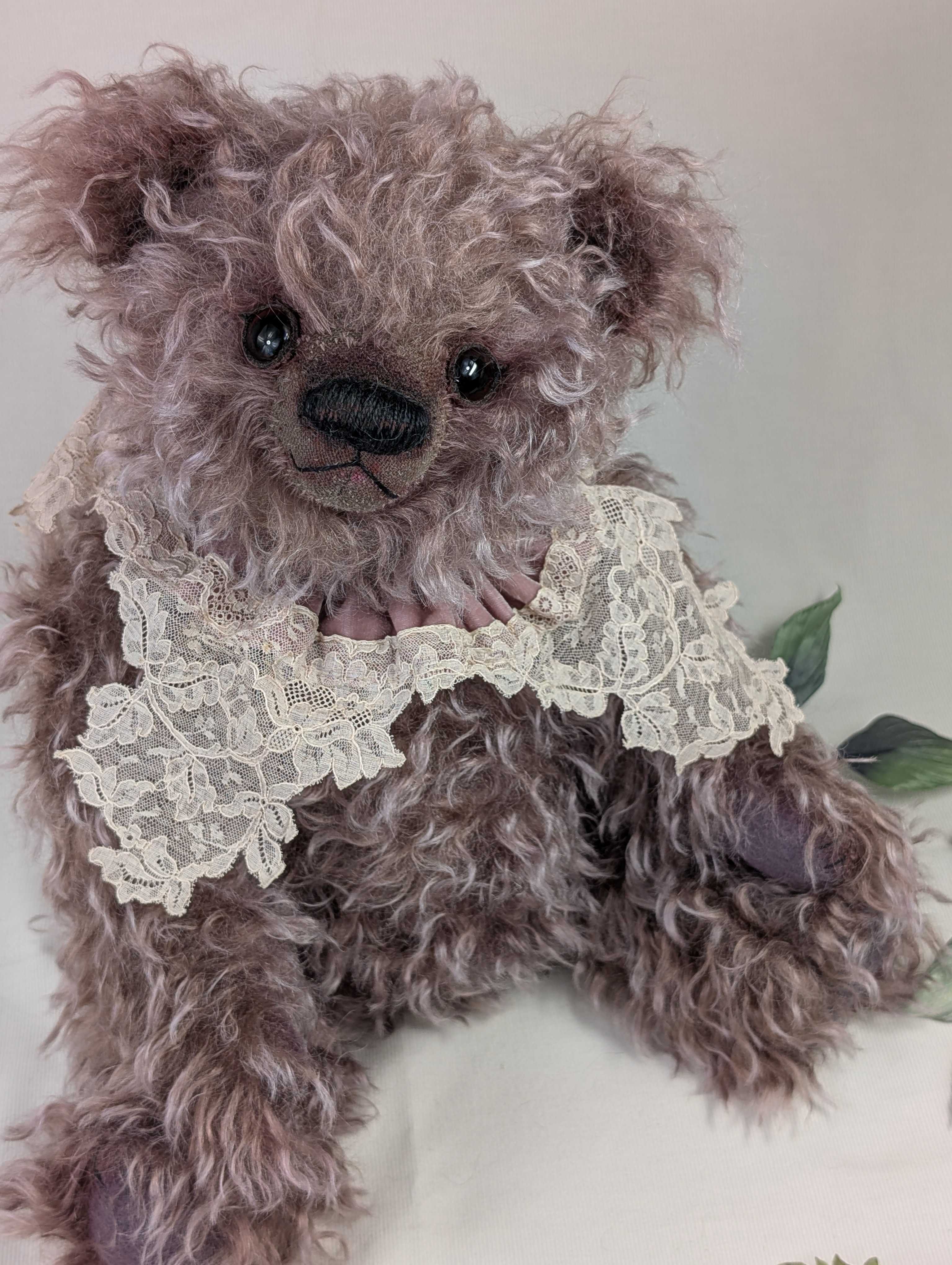 「京都テディベア博覧会ときどきアニマル」 2025年9月6日(土) 10:00〜11:00(プレビュー) 11:00〜17:00一般入場(入場は16:30まで) 会場:京都文化博物館 別館 販売作品は全部で8点。5点目のご紹介は、手染めのゴージャスモヘアを使ったベア。この小豆色したモジャモジャさんはサイズがちょっと大きめ。なので、抱きごたえバツグンです!