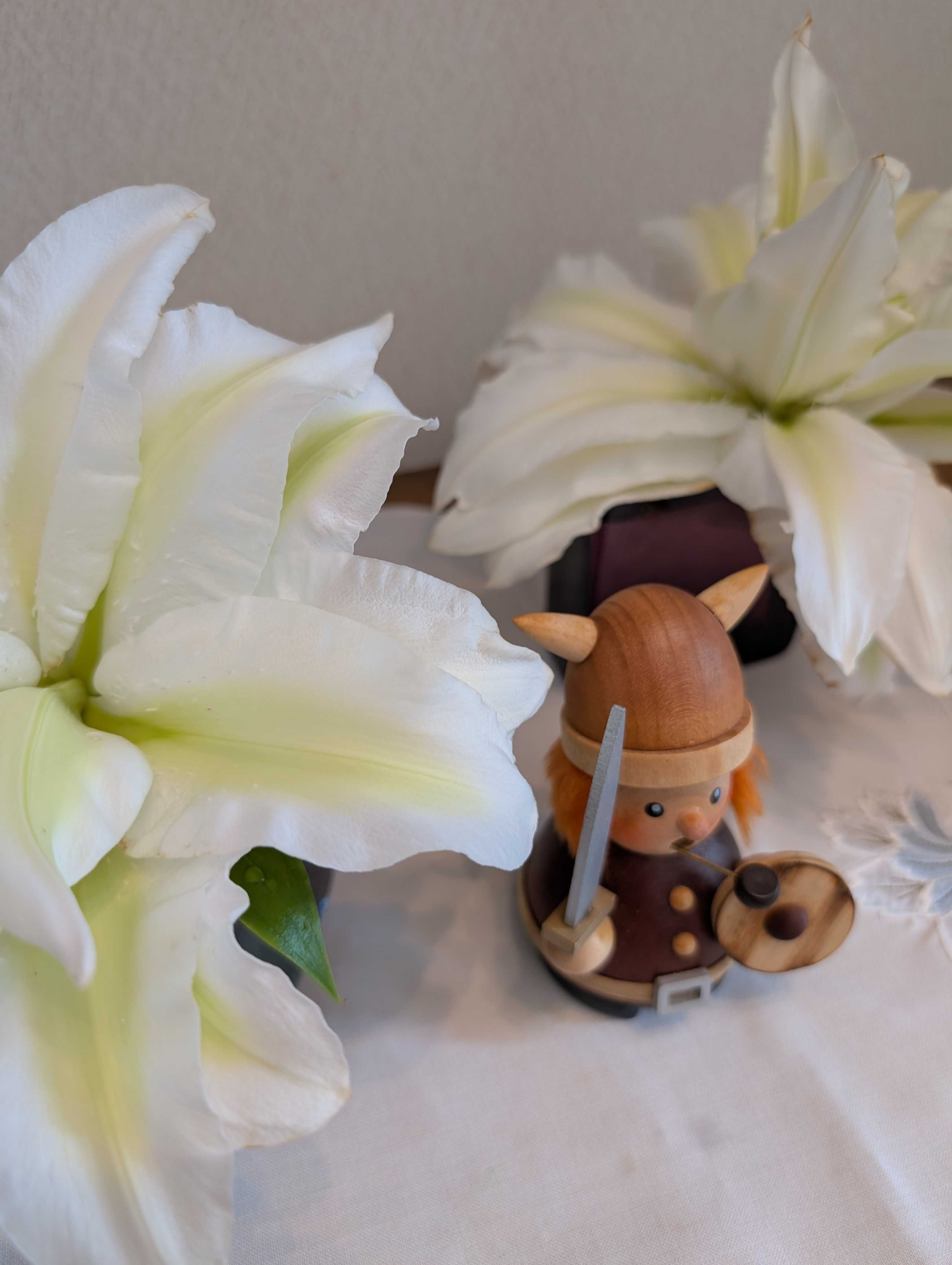 庭に八重のユリが咲きました。昨年の個展時にこのユリが入ったお花のアレンジを頂だきました。とても綺麗で印象に残りました。年末近く、地元のホームセンターでこのユリの球根を見つけて。ピンクも一緒に購入。年内に自宅の庭に植えてみました。花が咲くまで半年。待望の八重のユリをカットして、家中に飾ってみる。薔薇と違ってユリは香りが凄い!夜になると特に強く匂います。