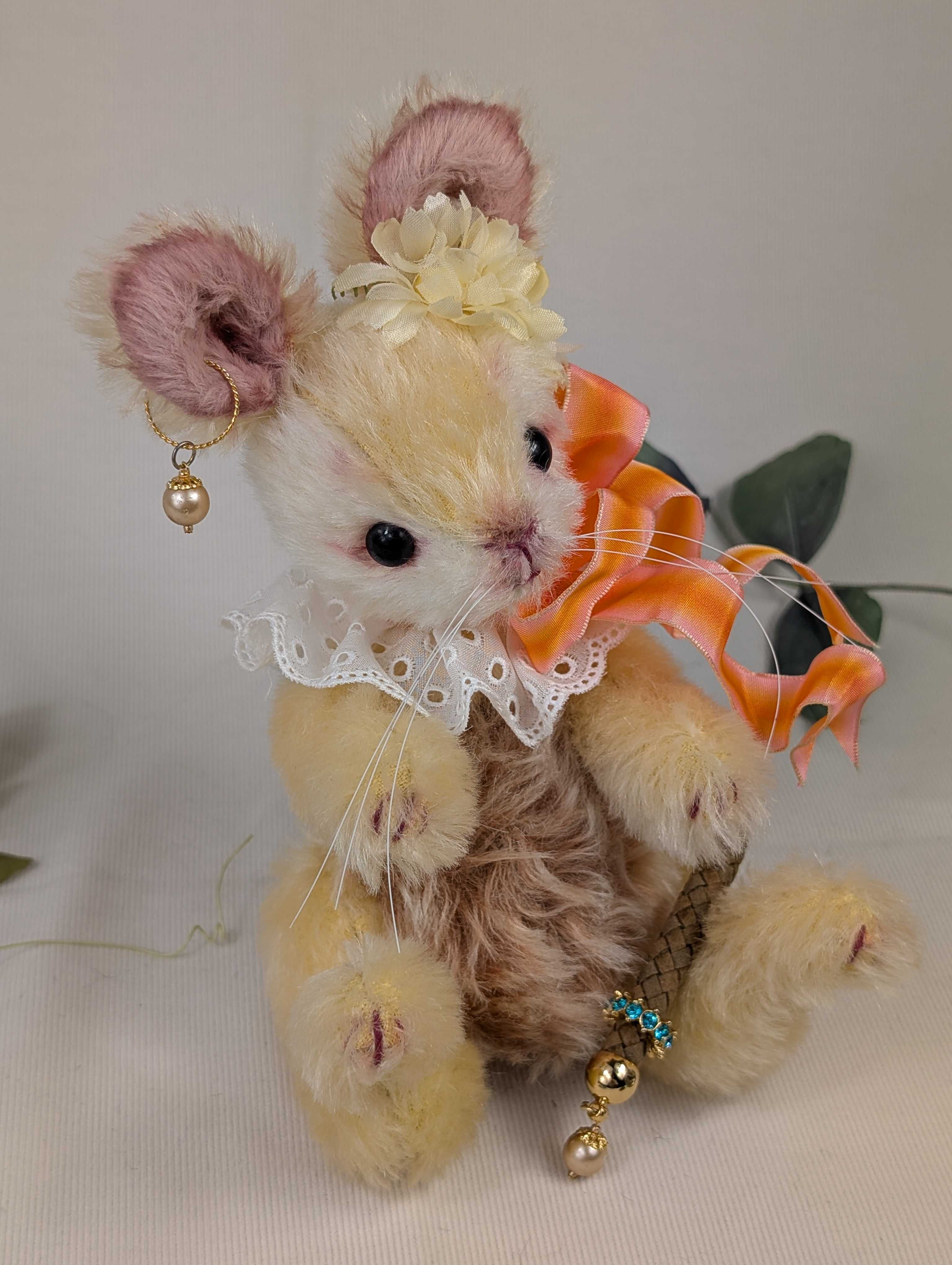 「京都テディベア博覧会ときどきアニマル」 2025年9月6日(土) 10:00〜11:00(プレビュー) 11:00〜17:00一般入場(入場は16:30まで) 会場:京都文化博物館 別館 販売作品は全部で8点。7点目のご紹介は、ちょっと小さい子をご紹介。薄いレモン色した可愛いネズミちゃんです。次回は最後の作品紹介となります。只今、製作中です。完成したらアップしますね。その前に、そろそろ販売方法をお知らせしようと思います。