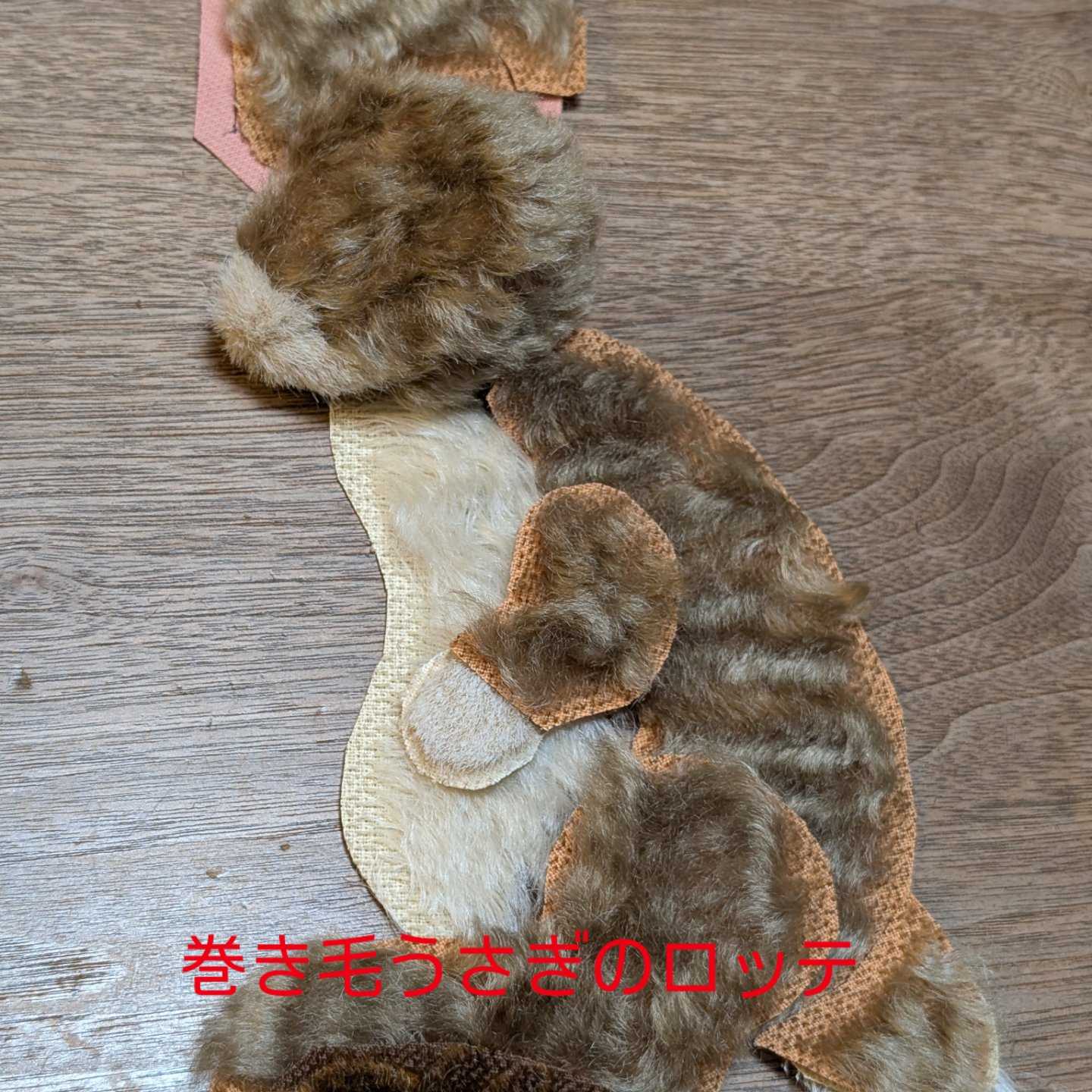 お客様からの問い合わせがありました。個展用に準備していた、まだ未完成の2体のうさぎたち。どのような感じなのですか?と。No,11「巻き毛うさぎロッテ」茶色いくせ毛がロッテ。猫背でうつむき加減のタイプ。No,12「細長うさぎベラ」黄色い直毛がベラ。細長くて真っ直ぐなお耳の持ち主。初めて作ります。ボディはリスっぽい。まだまだ縫製にも入っていないので。こんな感じでごめんなさい。巻き毛のロッテはヘッドだけ縫製が完了。耳も仕上げて、お顔だけでもお見せしたいと思います。できるのかぁ?
