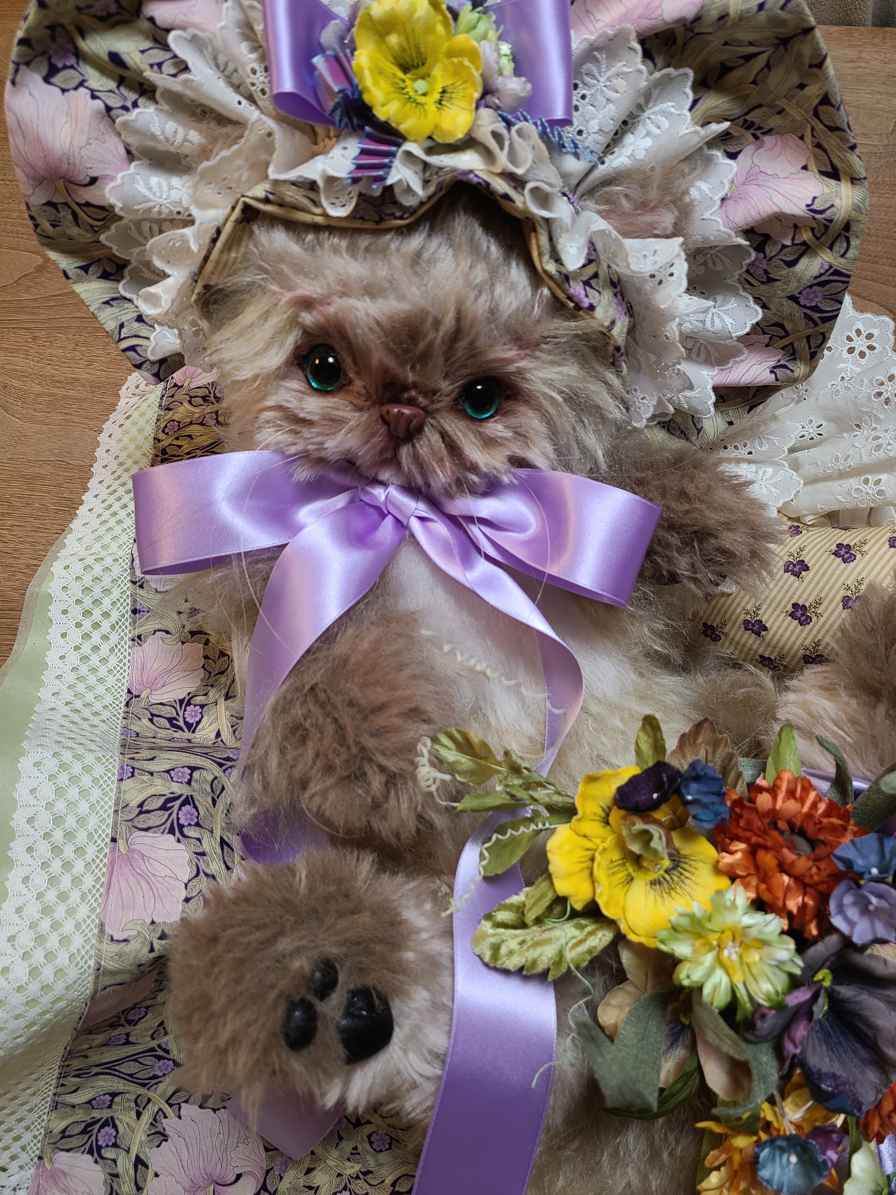 今日も猫さんのご紹介。ミヌエット・クルトンの大型。今回初めて作りました。ナカナカのヤンチャぶり。16ミリのガラスアイの色に特徴かあります。今現在での完成作品はこの子で最後。これから先は小さい作品を作り続けています。完成次第、お見せします。